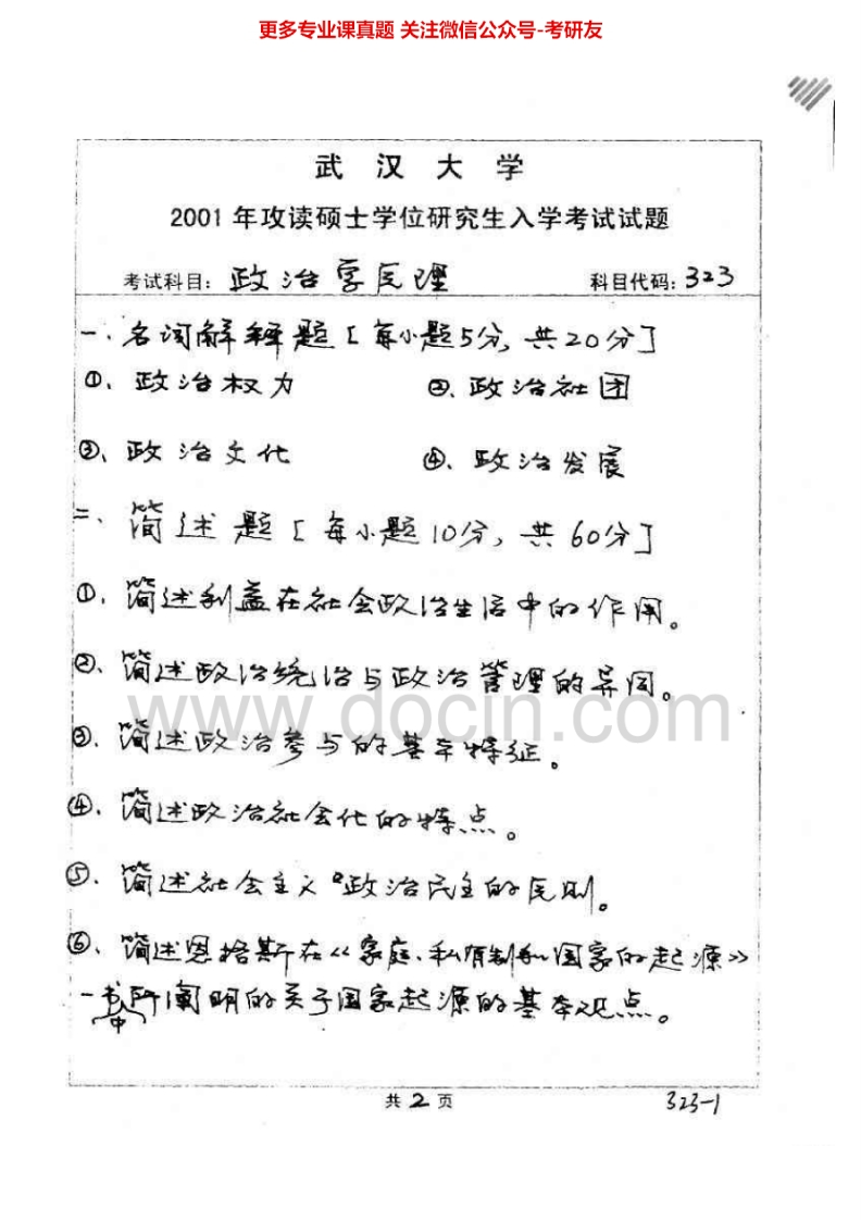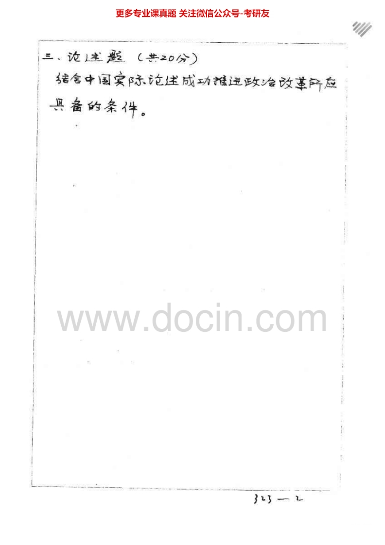 武汉大学643政治学原理2000-2007、2010其中2004有答案考研真题汇编.Image.Marked猴哥6个月前发布关注私信3.08MB16页04735武汉大学643政治学原理2000-2007、2010其中2004有答案考研真题汇编.Image.Marked此内容为免费资源,请登录后查看¥0 登录查看免费资源 第1页 / 共16页 第2页 / 共16页 第3页 / 共16页 该文档为免费文档,您可直接下载完整版进行阅读 © 版权声明文章版权归作者所有,未经允许请勿转载。THE END《武汉大学》(643)政治学原理考研资料考研专业课 喜欢就支持一下吧点赞35赞赏 分享QQ空间微博QQ好友海报分享复制链接收藏