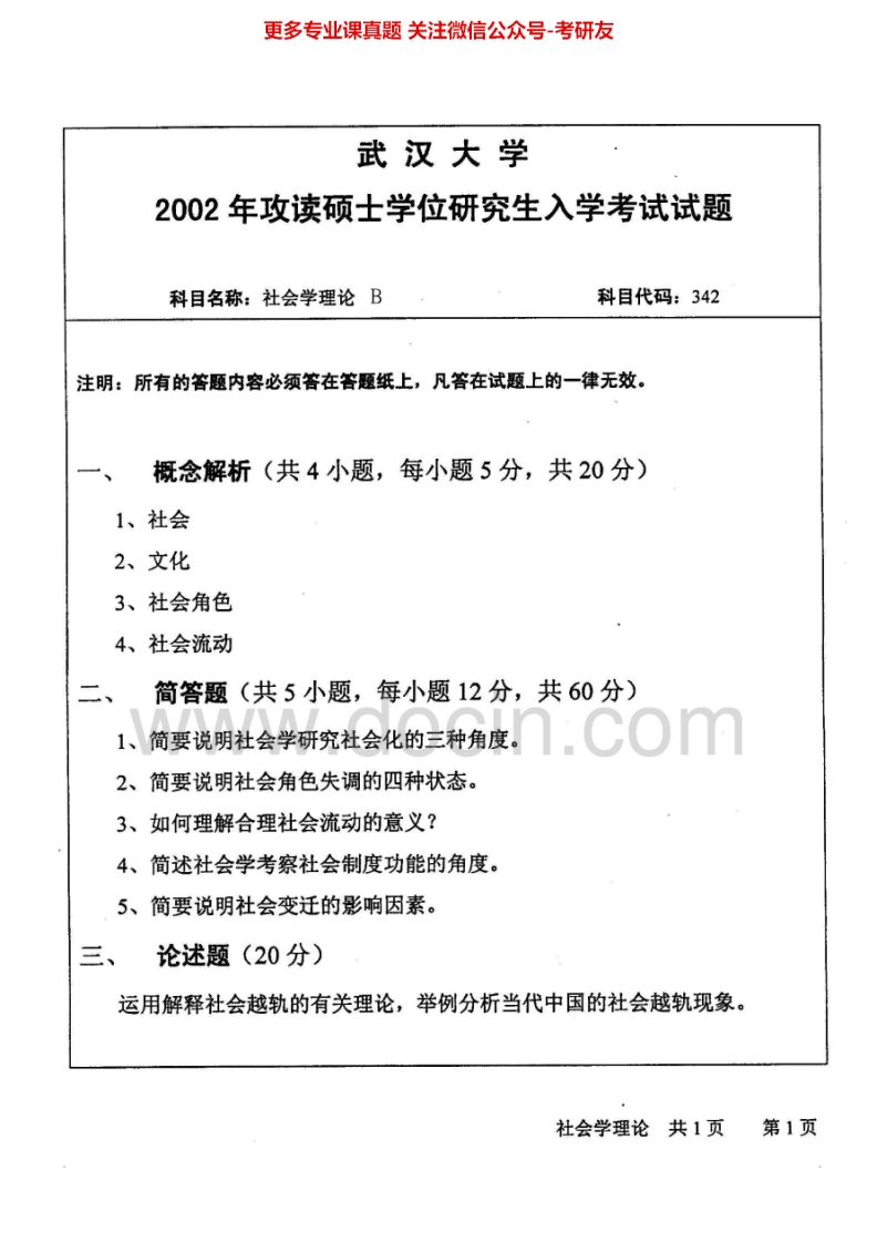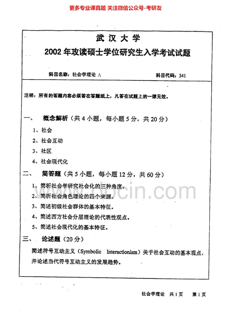 武汉大学647社会学理论2001-2002、2007、2010考研真题汇编.Image.Marked猴哥6个月前发布关注私信0.96MB6页04614武汉大学647社会学理论2001-2002、2007、2010考研真题汇编.Image.Marked此内容为免费资源,请登录后查看¥0 登录查看免费资源 第1页 / 共6页 第2页 / 共6页 第3页 / 共6页 该文档为免费文档,您可直接下载完整版进行阅读 © 版权声明文章版权归作者所有,未经允许请勿转载。THE END《武汉大学》(647)社会学理论和方法考研资料考研专业课 喜欢就支持一下吧点赞14赞赏 分享QQ空间微博QQ好友海报分享复制链接收藏