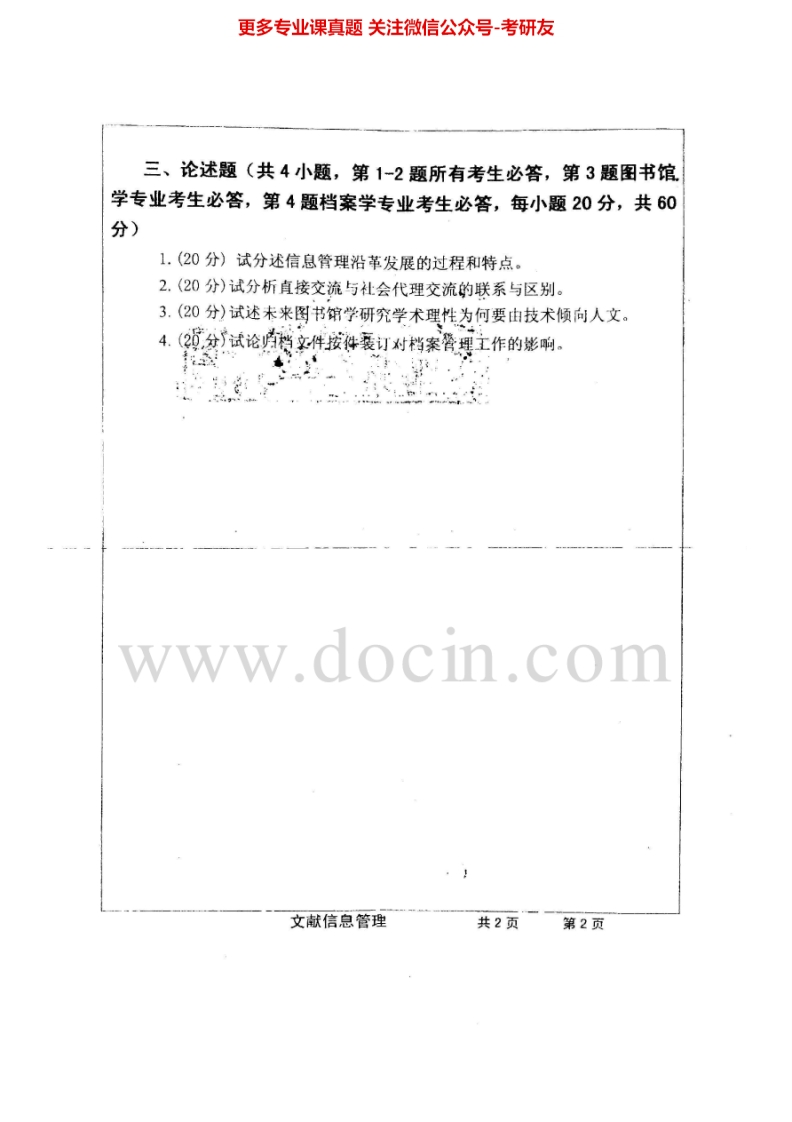 武汉大学620文献信息管理2007-2012考研真题汇编.Image.Marked猴哥6个月前发布关注私信1.56MB11页04017武汉大学620文献信息管理2007-2012考研真题汇编.Image.Marked此内容为免费资源,请登录后查看¥0 登录查看免费资源 第1页 / 共11页 第2页 / 共11页 第3页 / 共11页 该文档为免费文档,您可直接下载完整版进行阅读 © 版权声明文章版权归作者所有,未经允许请勿转载。THE END《武汉大学》(620)信息管理与传播考研资料考研专业课 喜欢就支持一下吧点赞17赞赏 分享QQ空间微博QQ好友海报分享复制链接收藏