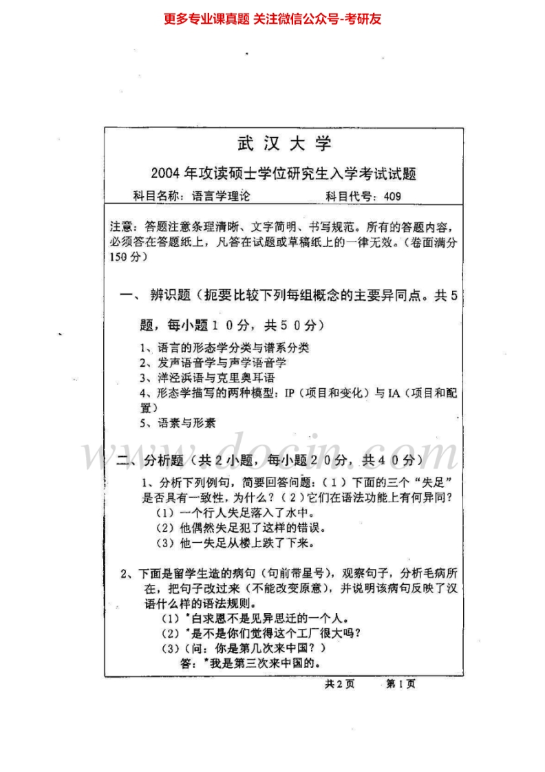 武汉大学635语言学理论2003-2008考研真题汇编.Image.Marked猴哥6个月前发布关注私信3.95MB9页09164武汉大学635语言学理论2003-2008考研真题汇编.Image.Marked此内容为免费资源,请登录后查看¥0 登录查看免费资源 第1页 / 共9页 第2页 / 共9页 第3页 / 共9页 该文档为免费文档,您可直接下载完整版进行阅读 © 版权声明文章版权归作者所有,未经允许请勿转载。THE END《武汉大学》(635)语言学理论考研资料考研专业课 喜欢就支持一下吧点赞64赞赏 分享QQ空间微博QQ好友海报分享复制链接收藏