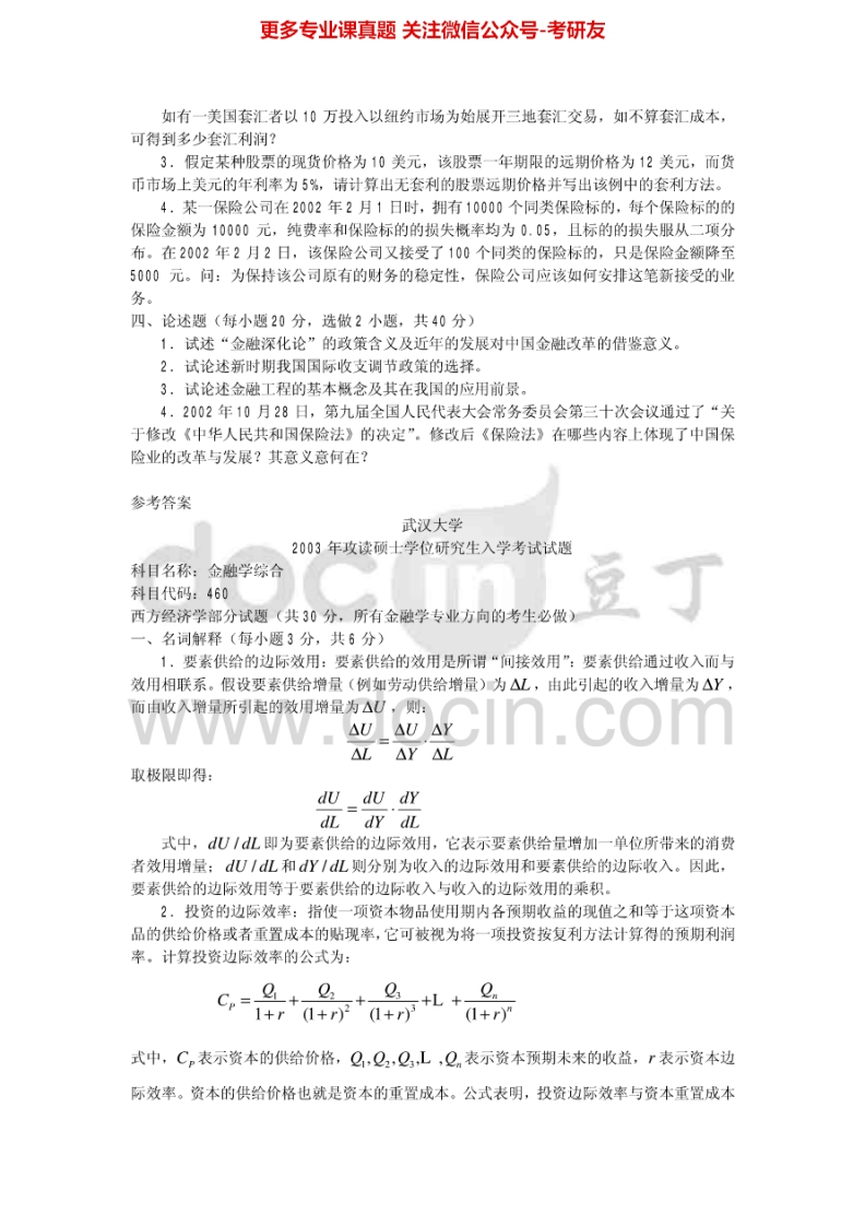 武汉大学431金融学综合2003-2005其中2003-2004有答案考研真题汇编.Image.Marked猴哥6个月前发布关注私信7.15MB41页04962武汉大学431金融学综合2003-2005其中2003-2004有答案考研真题汇编.Image.Marked此内容为免费资源,请登录后查看¥0 登录查看免费资源 第1页 / 共41页 第2页 / 共41页 第3页 / 共41页 该文档为免费文档,您可直接下载完整版进行阅读 © 版权声明文章版权归作者所有,未经允许请勿转载。THE END《武汉大学》(431)金融学综合考研资料考研专业课 喜欢就支持一下吧点赞62赞赏 分享QQ空间微博QQ好友海报分享复制链接收藏
