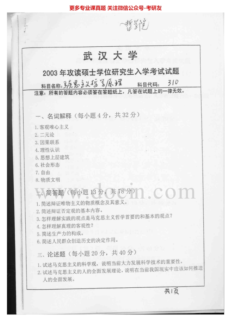 武汉大学843马克思主义哲学原理2002-2004考研真题汇编.Image.Marked猴哥6个月前发布关注私信0.94MB4页04245武汉大学843马克思主义哲学原理2002-2004考研真题汇编.Image.Marked此内容为免费资源,请登录后查看¥0 登录查看免费资源 第1页 / 共4页 第2页 / 共4页 第3页 / 共4页 该文档为免费文档,您可直接下载完整版进行阅读 © 版权声明文章版权归作者所有,未经允许请勿转载。THE END《武汉大学》(843)哲学原典考研资料考研专业课 喜欢就支持一下吧点赞45赞赏 分享QQ空间微博QQ好友海报分享复制链接收藏
