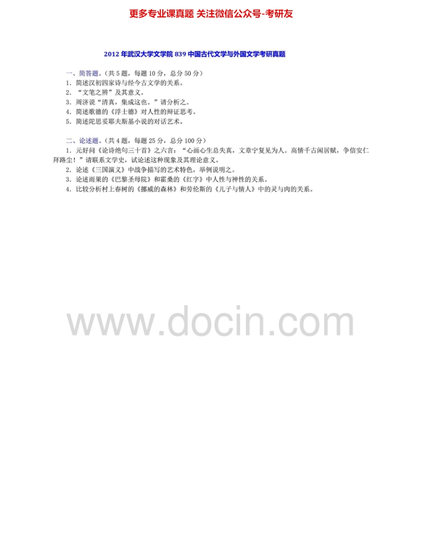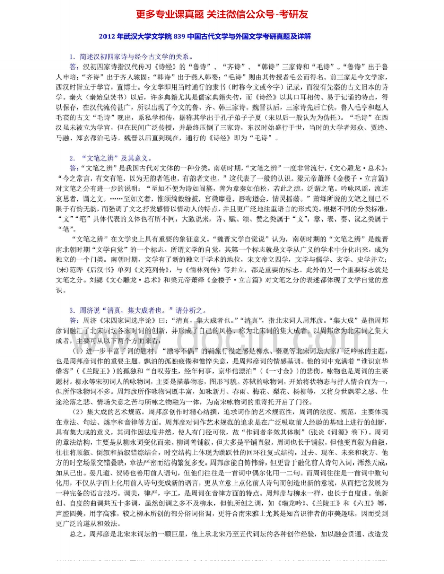 武汉大学839中国古代文学与外国文学2008、2011-2012其中2011-2012有答案考研真题汇编.Image.Marked猴哥6个月前发布关注私信4.72MB13页08962武汉大学839中国古代文学与外国文学2008、2011-2012其中2011-2012有答案考研真题汇编.Image.Marked此内容为免费资源,请登录后查看¥0 登录查看免费资源 第1页 / 共13页 第2页 / 共13页 第3页 / 共13页 该文档为免费文档,您可直接下载完整版进行阅读 © 版权声明文章版权归作者所有,未经允许请勿转载。THE END《武汉大学》(839)中国古代文学与外国文学考研资料考研专业课 喜欢就支持一下吧点赞62赞赏 分享QQ空间微博QQ好友海报分享复制链接收藏