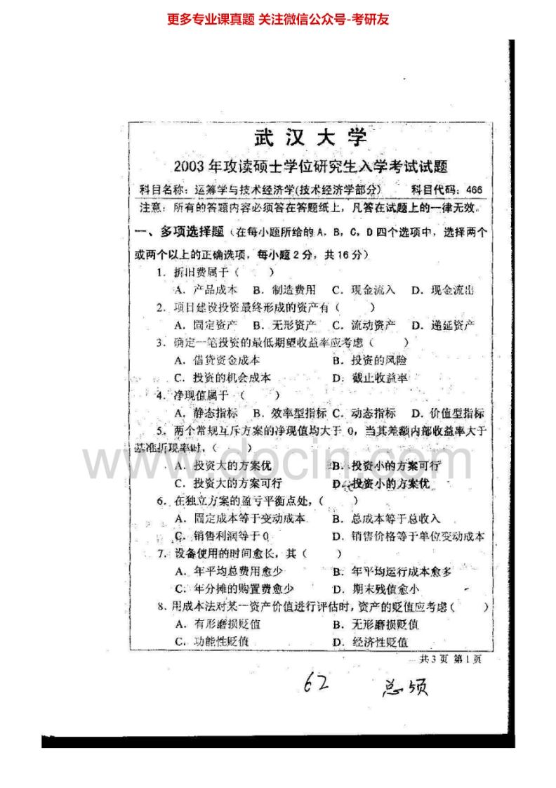 武汉大学820运筹学与技术经济学2003-2007、2010-2011考研真题汇编.Image.Marked猴哥6个月前发布关注私信10.46MB33页08344武汉大学820运筹学与技术经济学2003-2007、2010-2011考研真题汇编.Image.Marked此内容为免费资源,请登录后查看¥0 登录查看免费资源 第1页 / 共33页 第2页 / 共33页 第3页 / 共33页 该文档为免费文档,您可直接下载完整版进行阅读 © 版权声明文章版权归作者所有,未经允许请勿转载。THE END《武汉大学》(820)运筹学与统计学考研资料考研专业课 喜欢就支持一下吧点赞44赞赏 分享QQ空间微博QQ好友海报分享复制链接收藏