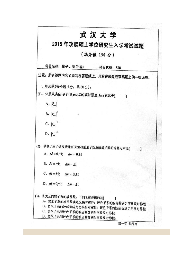 武汉大学875量子力学历年考研真题汇编猴哥6个月前发布关注私信2.17MB40页09054武汉大学875量子力学历年考研真题汇编此内容为免费资源,请登录后查看¥0 登录查看免费资源 第1页 / 共40页 第2页 / 共40页 第3页 / 共40页 该文档为免费文档,您可直接下载完整版进行阅读 © 版权声明文章版权归作者所有,未经允许请勿转载。THE END考研专业课 喜欢就支持一下吧点赞54赞赏 分享QQ空间微博QQ好友海报分享复制链接收藏