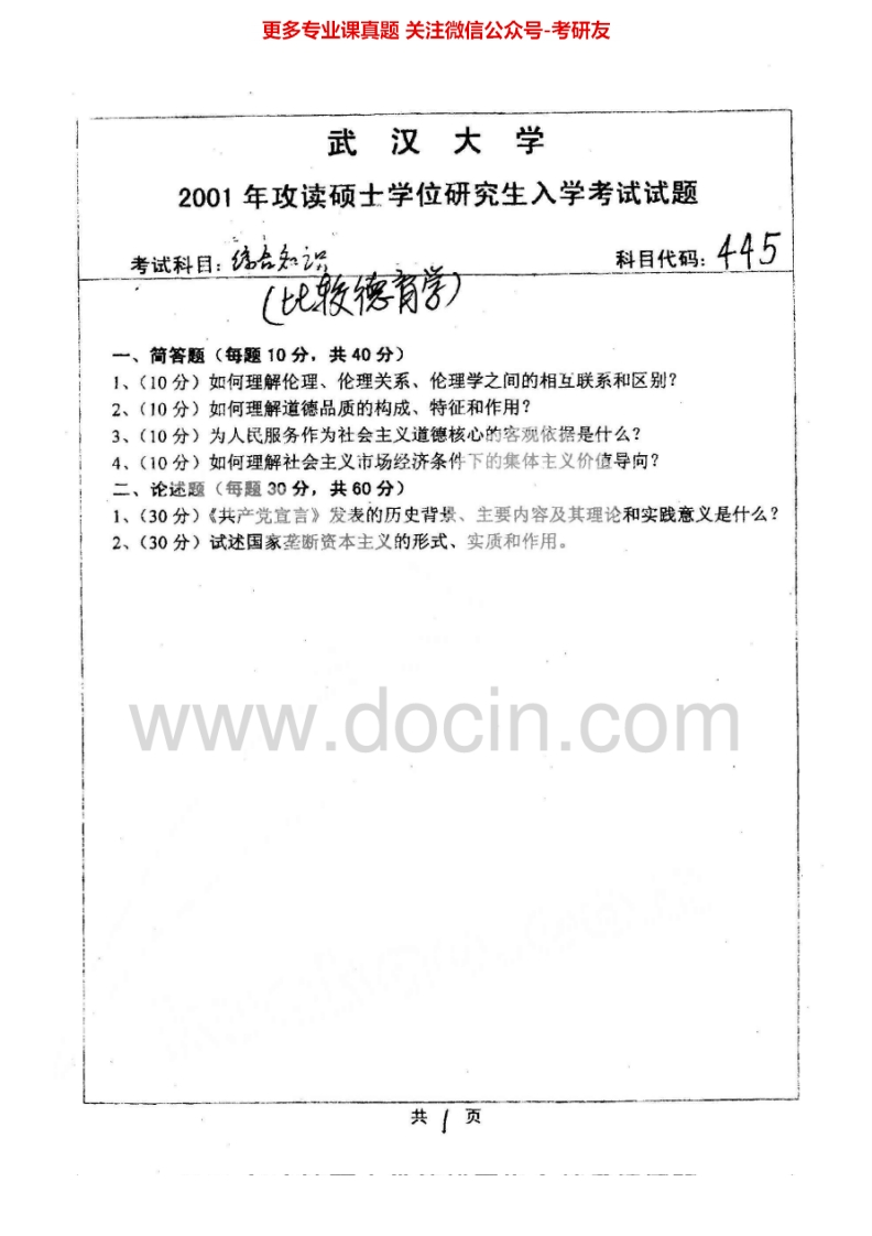 武汉大学871比较德育学2000-2002考研真题汇编.Image.Marked猴哥6个月前发布关注私信0.57MB3页08130武汉大学871比较德育学2000-2002考研真题汇编.Image.Marked此内容为免费资源,请登录后查看¥0 登录查看免费资源 第1页 / 共3页 第2页 / 共3页 第3页 / 共3页 已完成全部阅读,共3页 © 版权声明文章版权归作者所有,未经允许请勿转载。THE END考研专业课 喜欢就支持一下吧点赞30赞赏 分享QQ空间微博QQ好友海报分享复制链接收藏