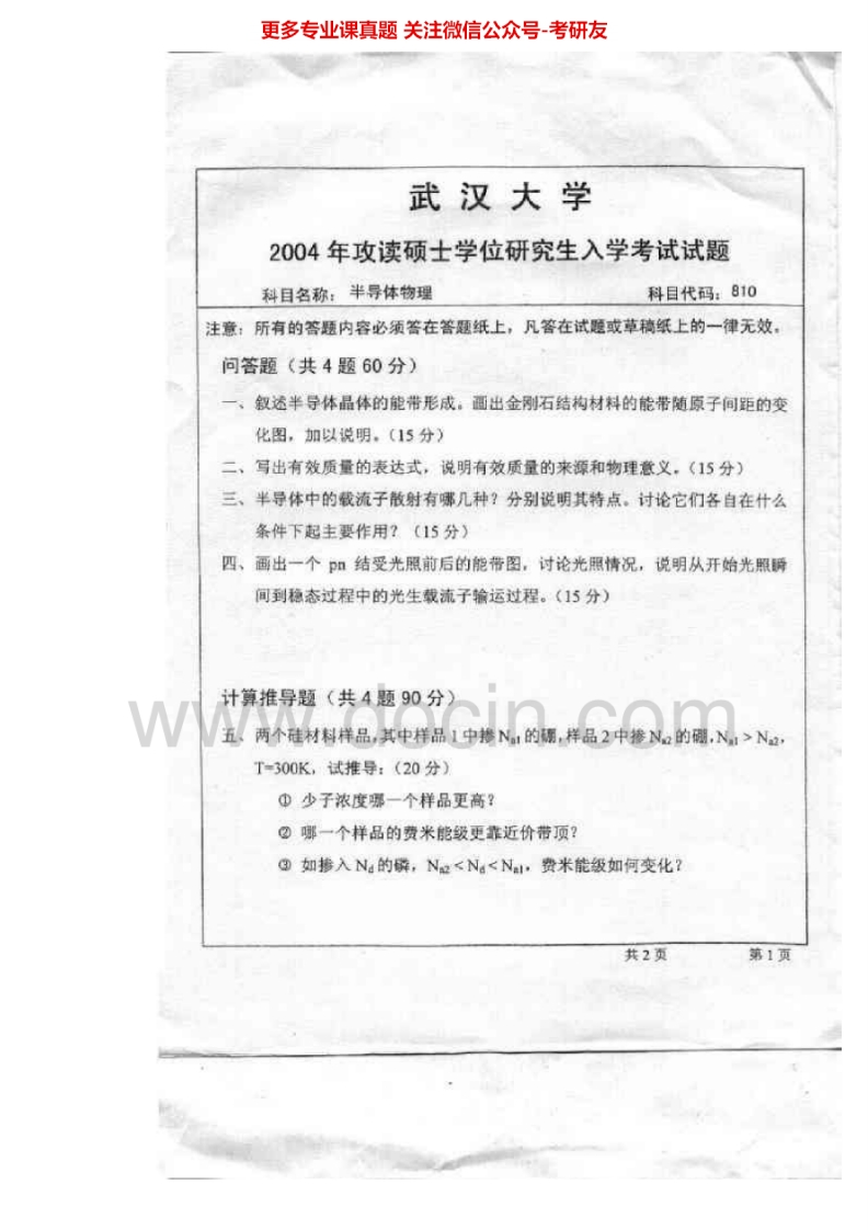 武汉大学879半导体物理1999、2004-2007、2010考研真题汇编.Image.Marked猴哥6个月前发布关注私信2.72MB9页08539武汉大学879半导体物理1999、2004-2007、2010考研真题汇编.Image.Marked此内容为免费资源,请登录后查看¥0 登录查看免费资源 第1页 / 共9页 第2页 / 共9页 第3页 / 共9页 该文档为免费文档,您可直接下载完整版进行阅读 © 版权声明文章版权归作者所有,未经允许请勿转载。THE END《武汉大学》(879)半导体物理考研资料考研专业课 喜欢就支持一下吧点赞39赞赏 分享QQ空间微博QQ好友海报分享复制链接收藏