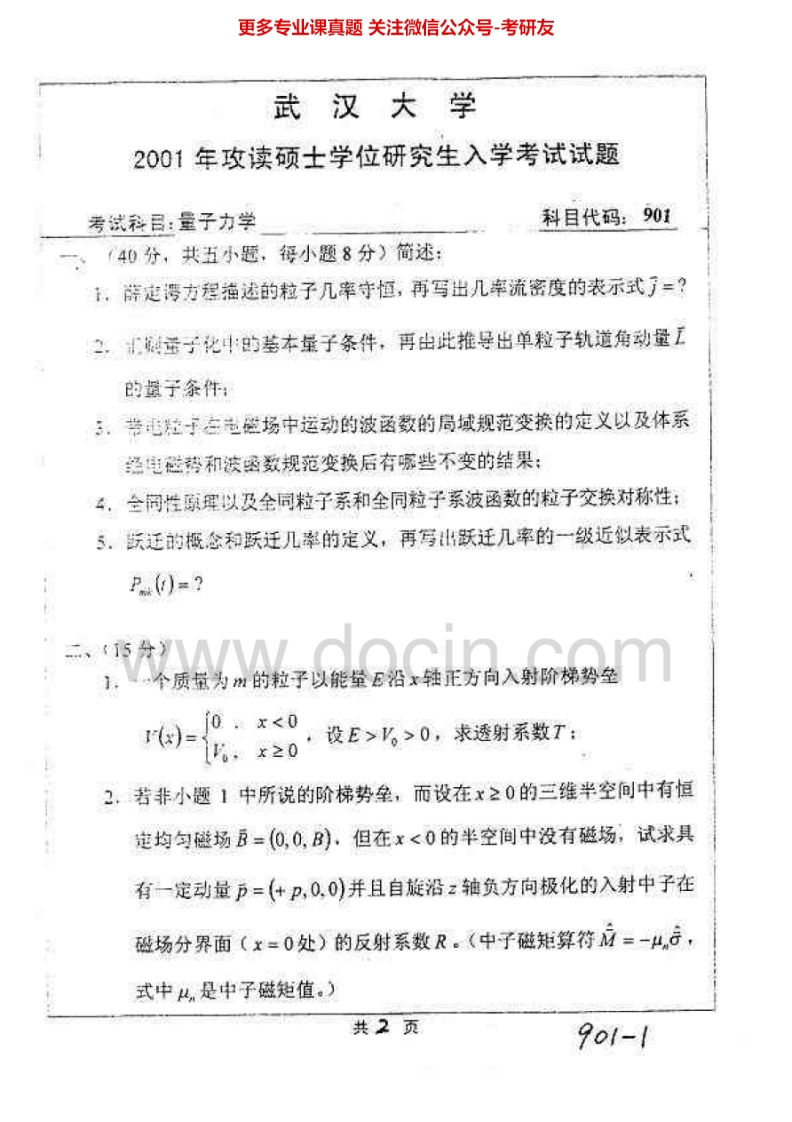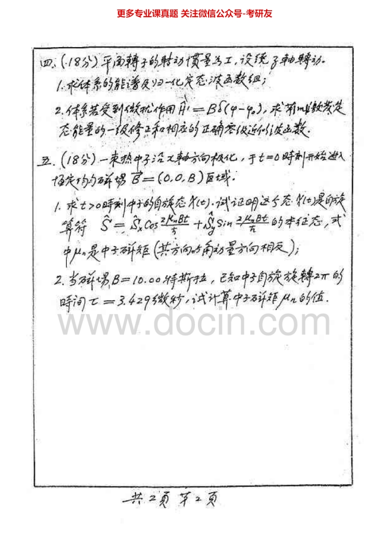 武汉大学875量子力学2000-2007、2010-2011考研真题汇编猴哥6个月前发布关注私信7.83MB17页04621武汉大学875量子力学2000-2007、2010-2011考研真题汇编此内容为免费资源,请登录后查看¥0 登录查看免费资源 第1页 / 共17页 第2页 / 共17页 第3页 / 共17页 该文档为免费文档,您可直接下载完整版进行阅读 © 版权声明文章版权归作者所有,未经允许请勿转载。THE END考研专业课 喜欢就支持一下吧点赞21赞赏 分享QQ空间微博QQ好友海报分享复制链接收藏