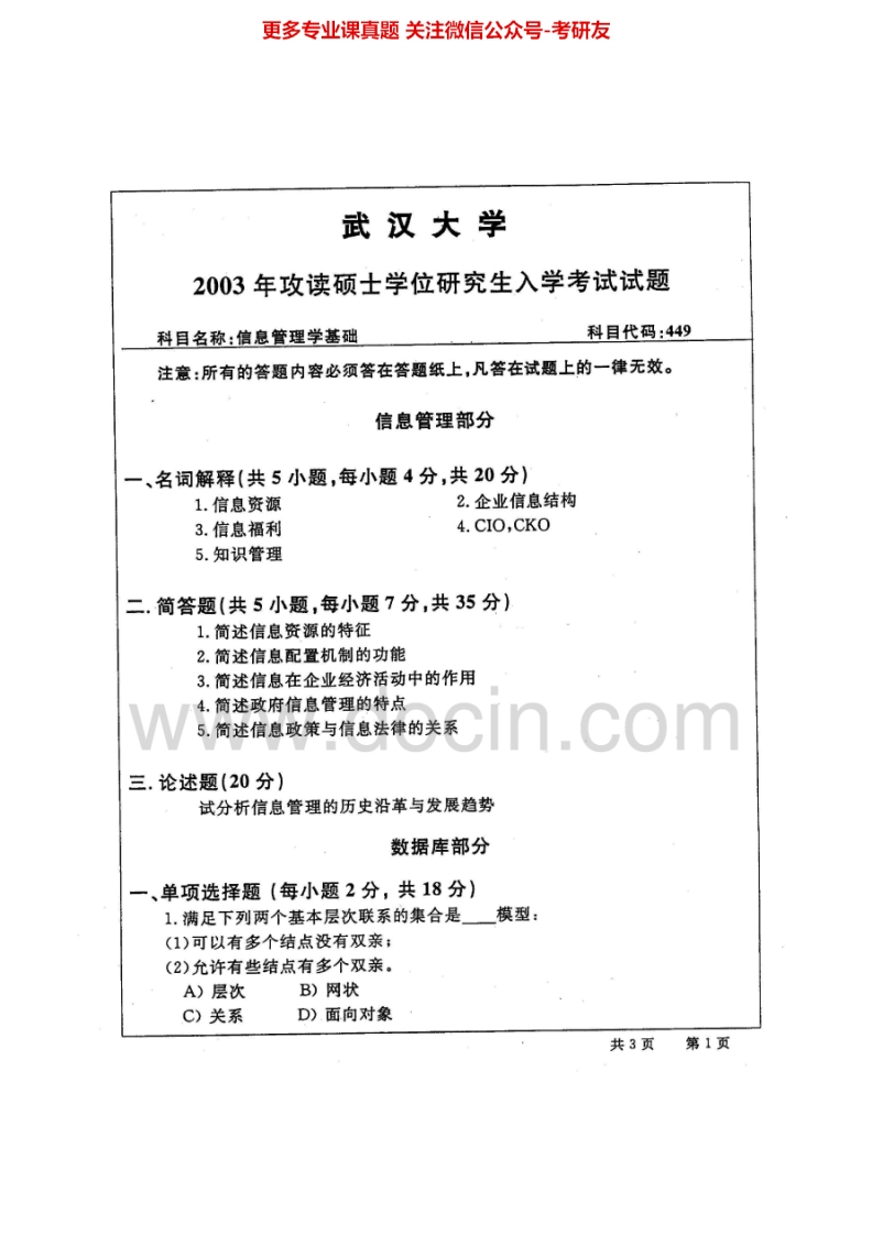 武汉大学信息管理基础02-08、数据库原理02-07考研真题汇编.Image.Marked-学习资源网 - 分享优质学习资料