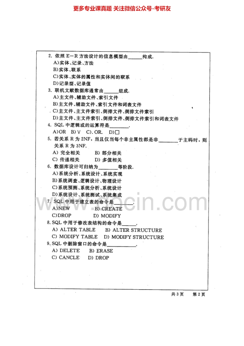 武汉大学信息管理基础02-08、数据库原理02-07考研真题汇编.Image.Marked