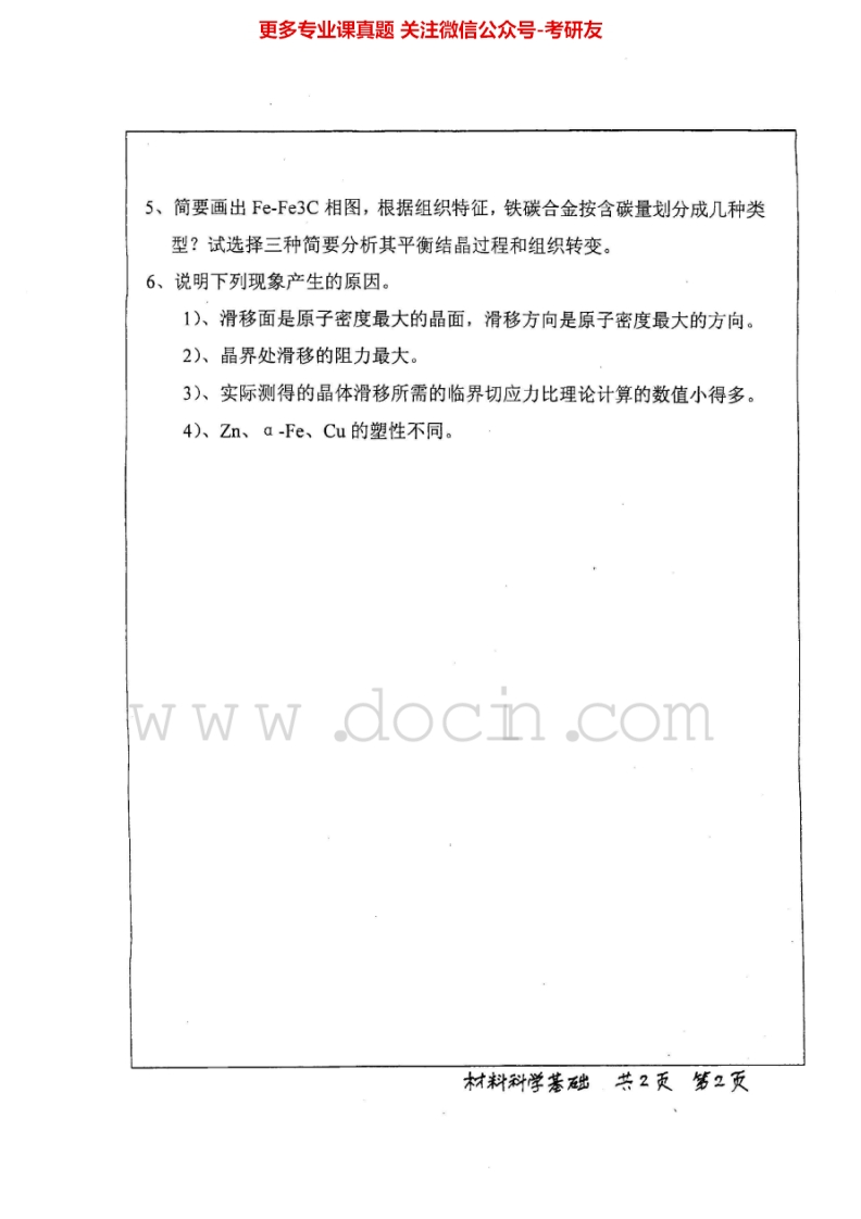 武汉大学材料科学基础历年真题(2002-2004)考研真题汇编猴哥6个月前发布关注私信0.86MB4页03245武汉大学材料科学基础历年真题(2002-2004)考研真题汇编此内容为免费资源,请登录后查看¥0 登录查看免费资源 第1页 / 共4页 第2页 / 共4页 第3页 / 共4页 该文档为免费文档,您可直接下载完整版进行阅读 © 版权声明文章版权归作者所有,未经允许请勿转载。THE END考研专业课 喜欢就支持一下吧点赞45赞赏 分享QQ空间微博QQ好友海报分享复制链接收藏
