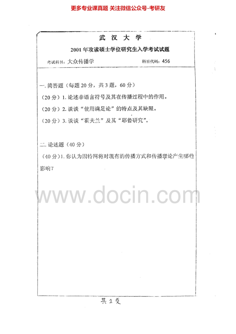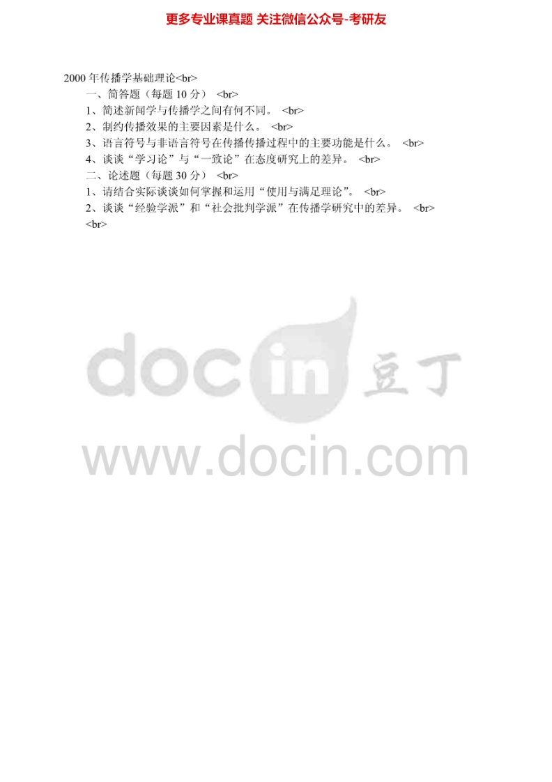 武汉大学新闻学专业考历年真题传播学理论1999-2010考研真题汇编.Image.Marked猴哥6个月前发布关注私信4.89MB17页08327武汉大学新闻学专业考历年真题传播学理论1999-2010考研真题汇编.Image.Marked此内容为免费资源,请登录后查看¥0 登录查看免费资源 第1页 / 共17页 第2页 / 共17页 第3页 / 共17页 该文档为免费文档,您可直接下载完整版进行阅读 © 版权声明文章版权归作者所有,未经允许请勿转载。THE END考研专业课 喜欢就支持一下吧点赞27赞赏 分享QQ空间微博QQ好友海报分享复制链接收藏