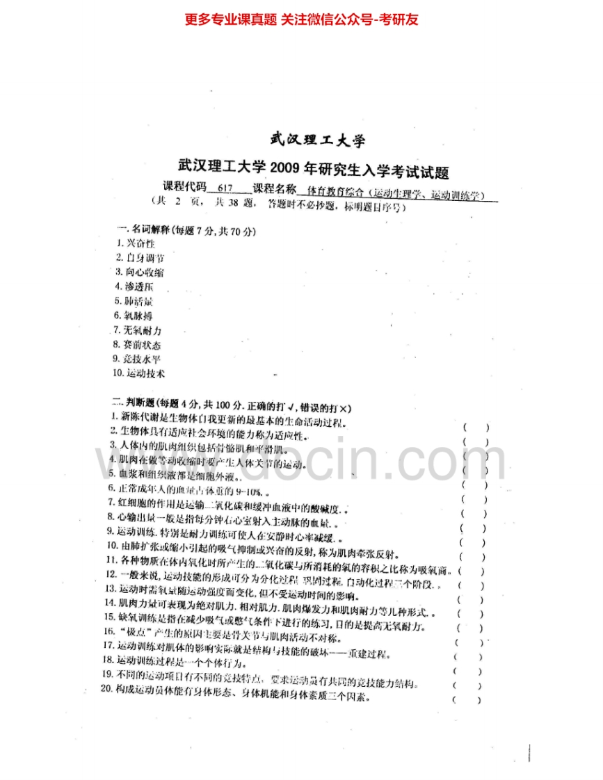 武汉理工大学617体育教育专业综合2007、2009-2010考研真题汇编.Image.Marked-学习资源网 - 分享优质学习资料