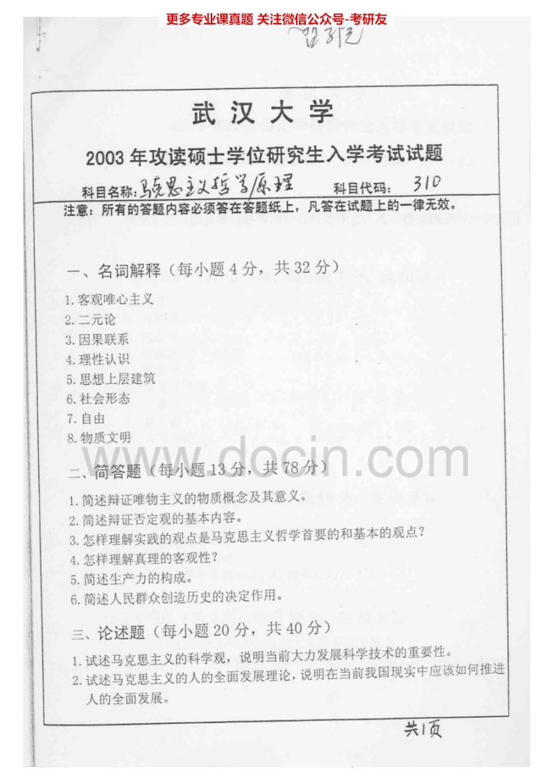 武汉大学马克思主义哲学原理2002-2004考研真题汇编.Image.Marked