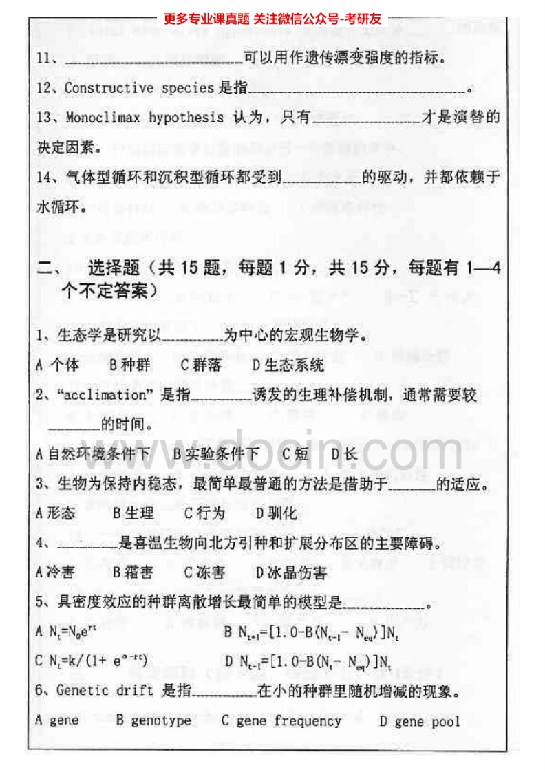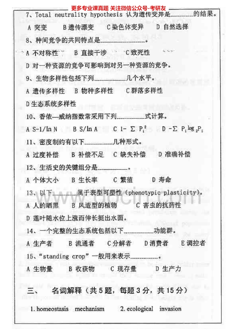 武汉大学生态学2002-2011普通生态学2002、2012-2013考研真题汇编.Image.Marked猴哥6个月前发布关注私信9.56MB33页03523武汉大学生态学2002-2011普通生态学2002、2012-2013考研真题汇编.Image.Marked此内容为免费资源,请登录后查看¥0 登录查看免费资源 第1页 / 共33页 第2页 / 共33页 第3页 / 共33页 该文档为免费文档,您可直接下载完整版进行阅读 © 版权声明文章版权归作者所有,未经允许请勿转载。THE END考研专业课 喜欢就支持一下吧点赞23赞赏 分享QQ空间微博QQ好友海报分享复制链接收藏