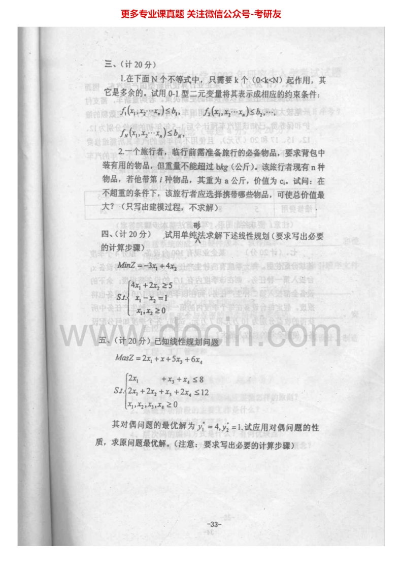 武汉理工大学881运筹学2002-2010考研真题汇编.Image.Marked猴哥6个月前发布关注私信8.34MB30页03853武汉理工大学881运筹学2002-2010考研真题汇编.Image.Marked此内容为免费资源,请登录后查看¥0 登录查看免费资源 第1页 / 共30页 第2页 / 共30页 第3页 / 共30页 该文档为免费文档,您可直接下载完整版进行阅读 © 版权声明文章版权归作者所有,未经允许请勿转载。THE END《武汉理工大学》(881)运筹学考研资料考研专业课 喜欢就支持一下吧点赞53赞赏 分享QQ空间微博QQ好友海报分享复制链接收藏