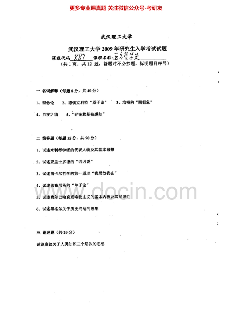 武汉理工大学887西方哲学史2007、2009-2010考研真题汇编.Image.Marked猴哥6个月前发布关注私信0.50MB3页05348武汉理工大学887西方哲学史2007、2009-2010考研真题汇编.Image.Marked此内容为免费资源,请登录后查看¥0 登录查看免费资源 第1页 / 共3页 第2页 / 共3页 第3页 / 共3页 已完成全部阅读,共3页 © 版权声明文章版权归作者所有,未经允许请勿转载。THE END考研专业课 喜欢就支持一下吧点赞48赞赏 分享QQ空间微博QQ好友海报分享复制链接收藏