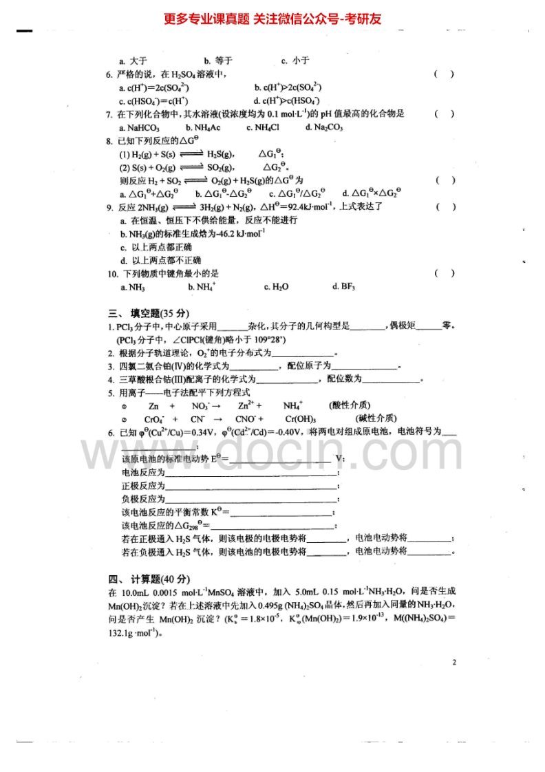 武汉理工大学无机化学2002-2010考研真题汇编.Image.Marked猴哥6个月前发布关注私信12.64MB38页09217武汉理工大学无机化学2002-2010考研真题汇编.Image.Marked此内容为免费资源,请登录后查看¥0 登录查看免费资源 第1页 / 共38页 第2页 / 共38页 第3页 / 共38页 该文档为免费文档,您可直接下载完整版进行阅读 © 版权声明文章版权归作者所有,未经允许请勿转载。THE END考研专业课 喜欢就支持一下吧点赞17赞赏 分享QQ空间微博QQ好友海报分享复制链接收藏