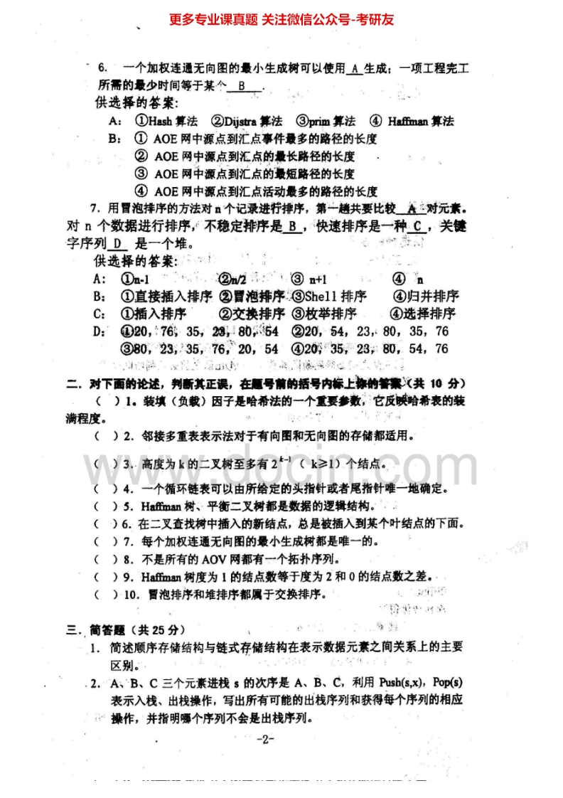 武汉理工大学数据结构(C语言版)2002-2010考研真题汇编.Image.Marked猴哥6个月前发布关注私信9.72MB26页08613武汉理工大学数据结构(C语言版)2002-2010考研真题汇编.Image.Marked此内容为免费资源,请登录后查看¥0 登录查看免费资源 第1页 / 共26页 第2页 / 共26页 第3页 / 共26页 该文档为免费文档,您可直接下载完整版进行阅读 © 版权声明文章版权归作者所有,未经允许请勿转载。THE END考研专业课 喜欢就支持一下吧点赞13赞赏 分享QQ空间微博QQ好友海报分享复制链接收藏