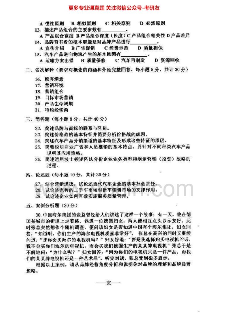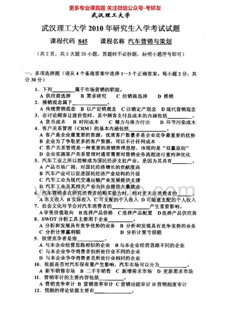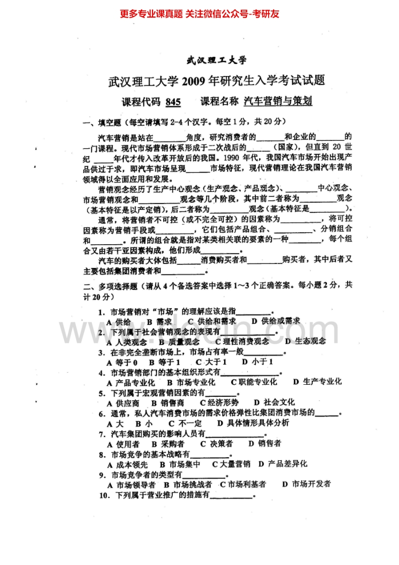 武汉理工大学汽车营销与策划2009-2010、汽车市场学04-08考研真题汇编.Image.Marked