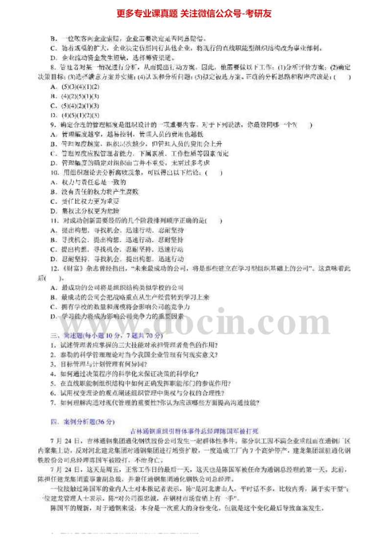 武汉理工大学903管理学原理2002-2010真题其中2002-2004、2006、2009-2010有答案考研真题汇编.Image.Marked猴哥6个月前发布关注私信46.11MB87页09530武汉理工大学903管理学原理2002-2010真题其中2002-2004、2006、2009-2010有答案考研真题汇编.Image.Marked此内容为免费资源,请登录后查看¥0 登录查看免费资源 第1页 / 共87页 第2页 / 共87页 第3页 / 共87页 该文档为免费文档,您可直接下载完整版进行阅读 © 版权声明文章版权归作者所有,未经允许请勿转载。THE END考研专业课 喜欢就支持一下吧点赞30赞赏 分享QQ空间微博QQ好友海报分享复制链接收藏