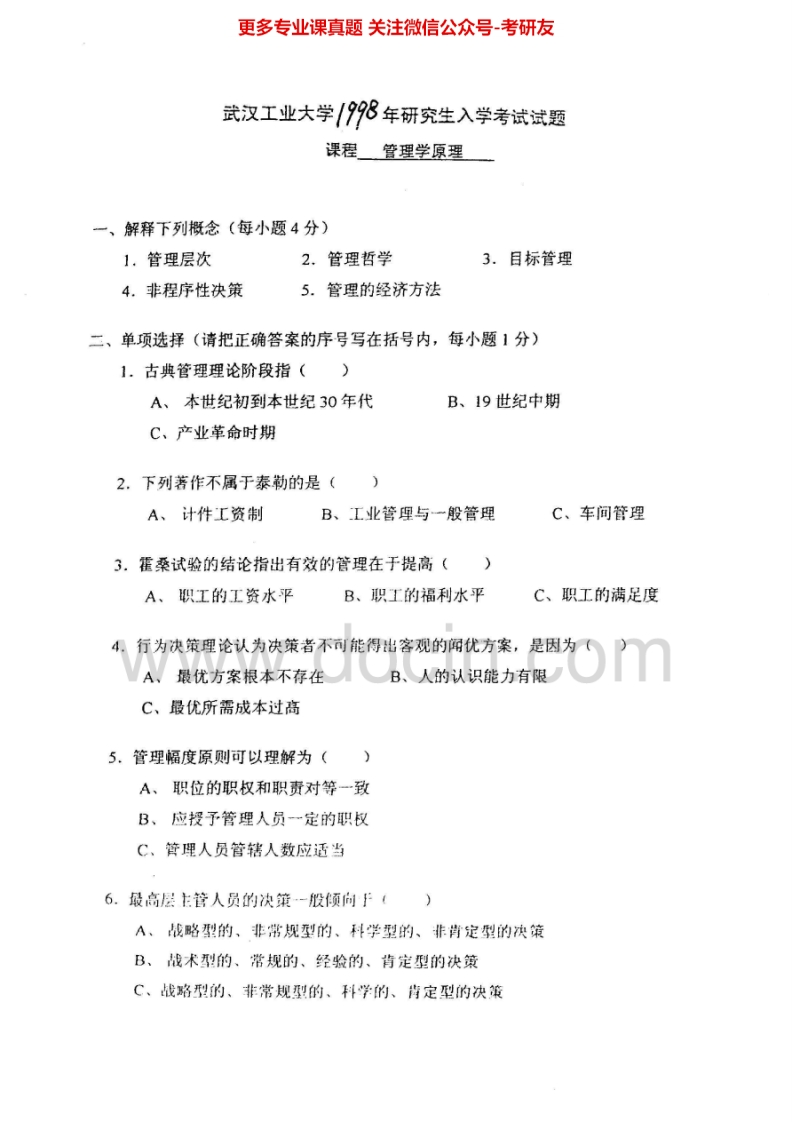 武汉理工大学管理学原理2010考研真题汇编.Image.Marked-学习资源网 - 分享优质学习资料