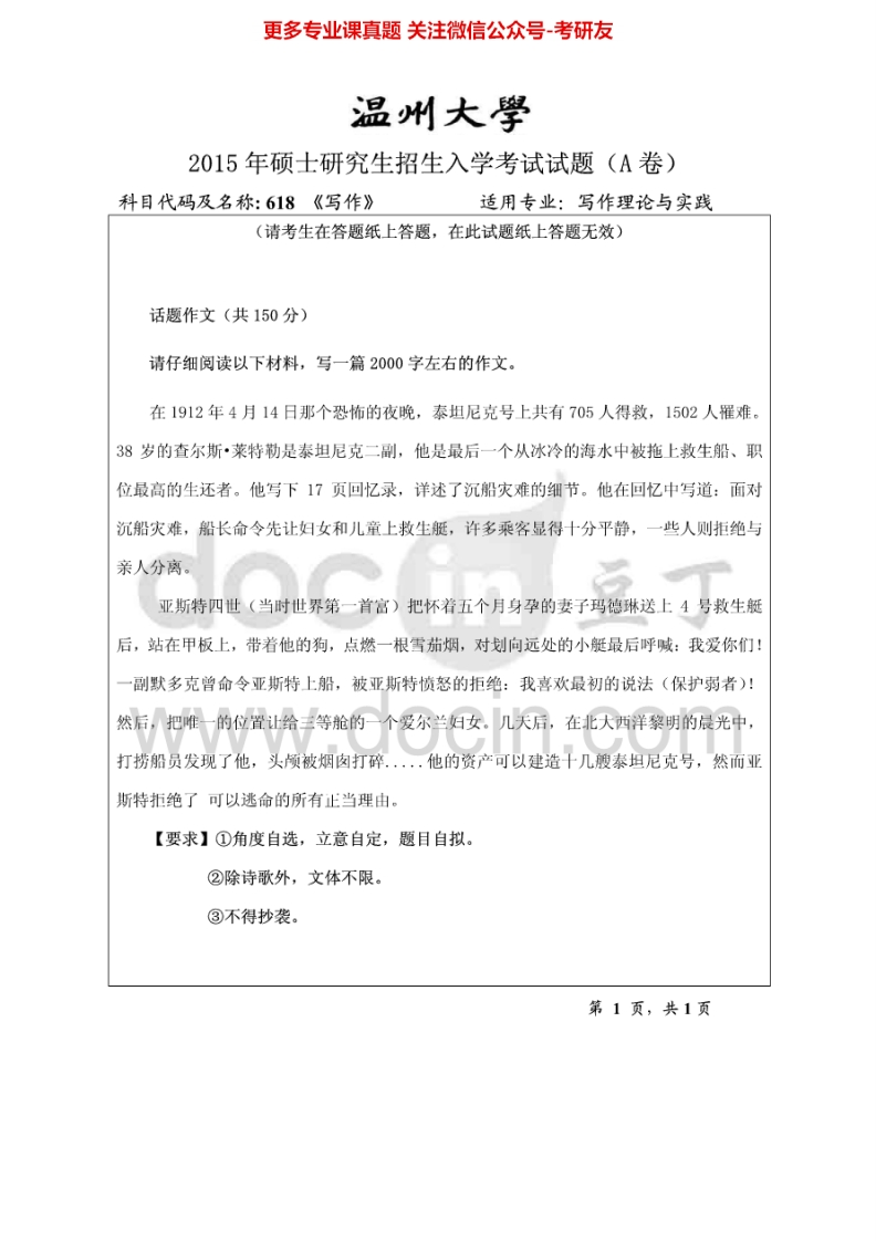 温州大学618写作2014-2015考研真题汇编.Image.Marked猴哥6个月前发布关注私信0.37MB2页08454温州大学618写作2014-2015考研真题汇编.Image.Marked此内容为免费资源,请登录后查看¥0 登录查看免费资源 第1页 / 共2页 第2页 / 共2页 已完成全部阅读,共2页 © 版权声明文章版权归作者所有,未经允许请勿转载。THE END《温州大学》(618)数学分析考研资料考研专业课 喜欢就支持一下吧点赞54赞赏 分享QQ空间微博QQ好友海报分享复制链接收藏
