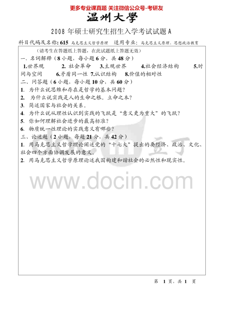 温州大学619马克思主义哲学原理2007-2009、2014-2015考研真题汇编.Image.Marked猴哥6个月前发布关注私信0.54MB5页08719温州大学619马克思主义哲学原理2007-2009、2014-2015考研真题汇编.Image.Marked此内容为免费资源,请登录后查看¥0 登录查看免费资源 第1页 / 共5页 第2页 / 共5页 第3页 / 共5页 该文档为免费文档,您可直接下载完整版进行阅读 © 版权声明文章版权归作者所有,未经允许请勿转载。THE END《温州大学》(619)量子力学考研资料考研专业课 喜欢就支持一下吧点赞19赞赏 分享QQ空间微博QQ好友海报分享复制链接收藏