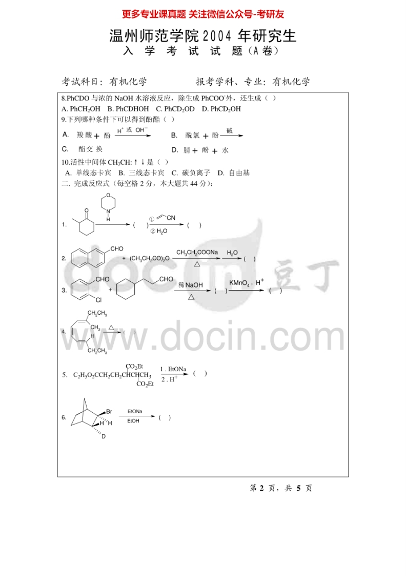 温州大学626有机化学Ⅰ2004-2010、2014-2015考研真题汇编.Image.Marked猴哥6个月前发布关注私信3.63MB57页05133温州大学626有机化学Ⅰ2004-2010、2014-2015考研真题汇编.Image.Marked此内容为免费资源,请登录后查看¥0 登录查看免费资源 第1页 / 共57页 第2页 / 共57页 第3页 / 共57页 该文档为免费文档,您可直接下载完整版进行阅读 © 版权声明文章版权归作者所有,未经允许请勿转载。THE END《温州大学》(626)舞蹈艺术概论考研资料考研专业课 喜欢就支持一下吧点赞33赞赏 分享QQ空间微博QQ好友海报分享复制链接收藏