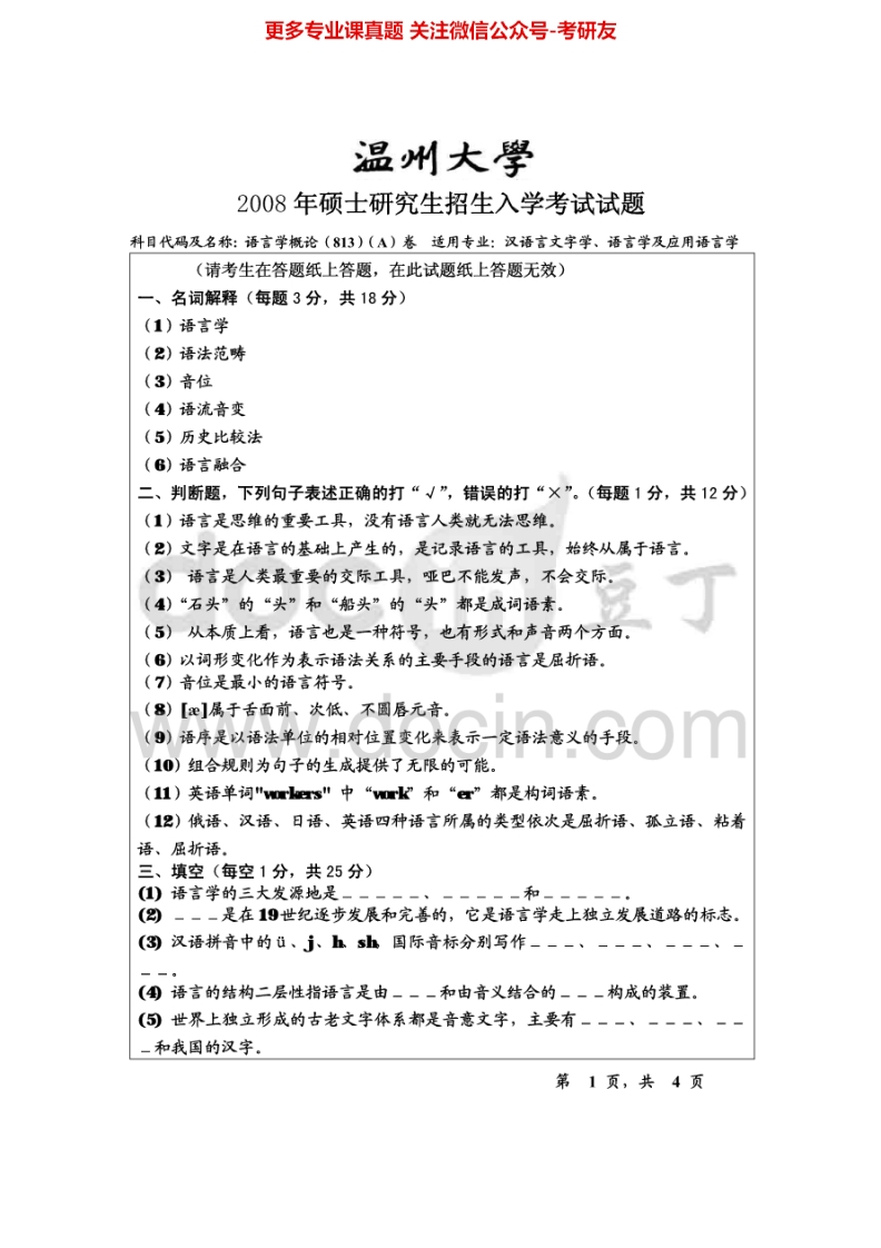 温州大学813语言学概论2006-2010、2014-2015考研真题汇编.Image.Marked猴哥6个月前发布关注私信1.23MB12页07250温州大学813语言学概论2006-2010、2014-2015考研真题汇编.Image.Marked此内容为免费资源,请登录后查看¥0 登录查看免费资源 第1页 / 共12页 第2页 / 共12页 第3页 / 共12页 该文档为免费文档,您可直接下载完整版进行阅读 © 版权声明文章版权归作者所有,未经允许请勿转载。THE END《温州大学》(813)思想政治教育原理考研资料考研专业课 喜欢就支持一下吧点赞50赞赏 分享QQ空间微博QQ好友海报分享复制链接收藏