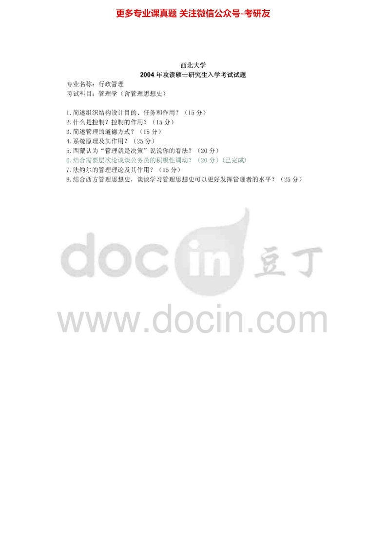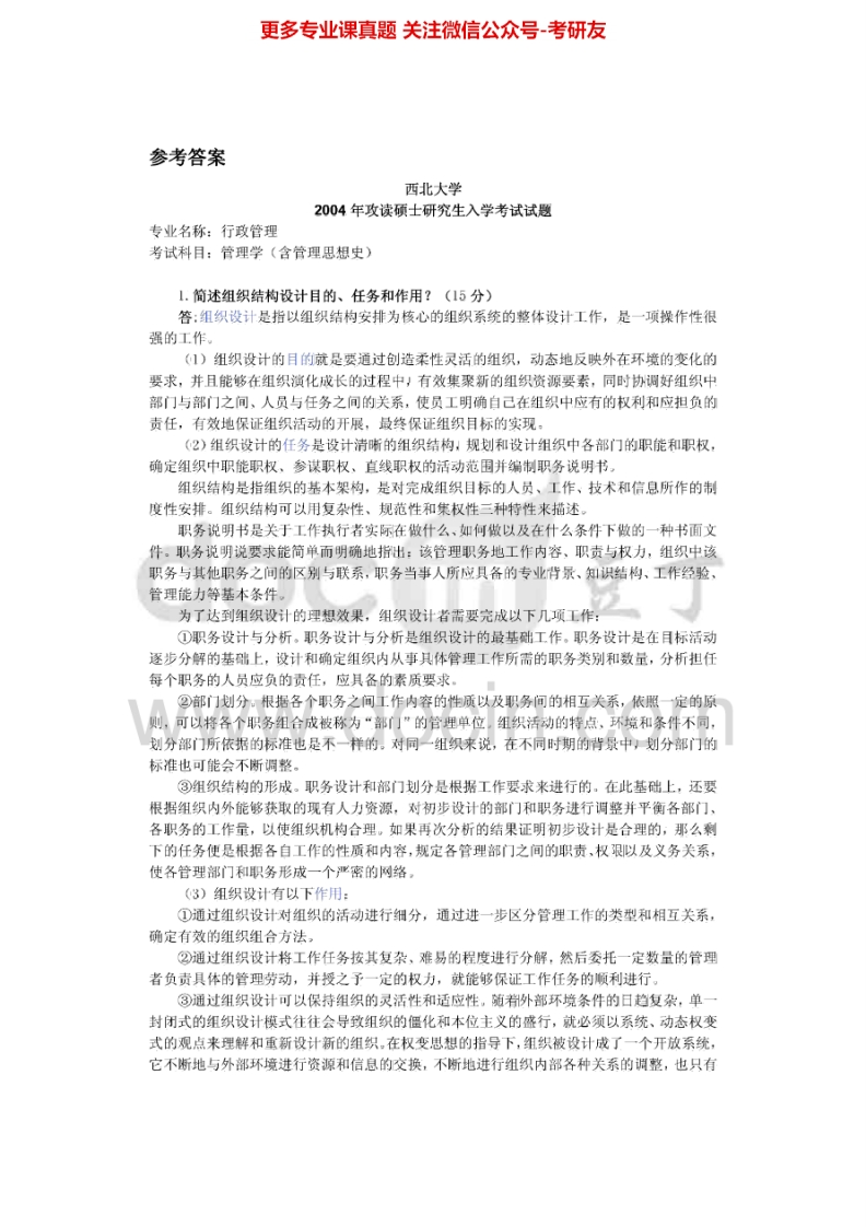 西北大学612管理学(含公共管理)2003-2006、2009其中2004有答案考研真题汇编.Image.Marked猴哥6个月前发布关注私信3.92MB17页08962西北大学612管理学(含公共管理)2003-2006、2009其中2004有答案考研真题汇编.Image.Marked此内容为免费资源,请登录后查看¥0 登录查看免费资源 第1页 / 共17页 第2页 / 共17页 第3页 / 共17页 该文档为免费文档,您可直接下载完整版进行阅读 © 版权声明文章版权归作者所有,未经允许请勿转载。THE END《西北大学》(612)管理学(含公共管理)考研资料考研专业课 喜欢就支持一下吧点赞62赞赏 分享QQ空间微博QQ好友海报分享复制链接收藏