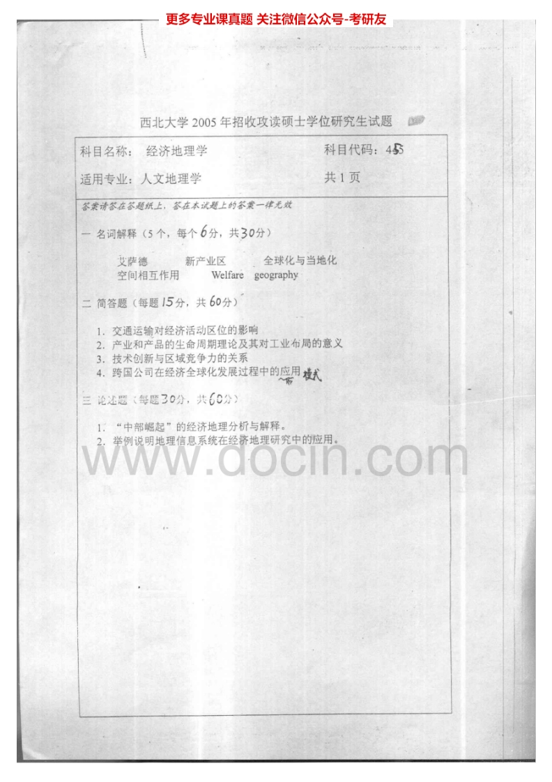 西北大学835经济地理学2003、2005-2006考研真题汇编.Image.Marked猴哥6个月前发布关注私信1.11MB3页09018西北大学835经济地理学2003、2005-2006考研真题汇编.Image.Marked此内容为免费资源,请登录后查看¥0 登录查看免费资源 第1页 / 共3页 第2页 / 共3页 第3页 / 共3页 已完成全部阅读,共3页 © 版权声明文章版权归作者所有,未经允许请勿转载。THE END《西北大学》(835)人文地理学考研资料考研专业课 喜欢就支持一下吧点赞18赞赏 分享QQ空间微博QQ好友海报分享复制链接收藏