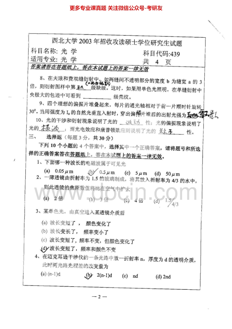 西北大学825光学2003-2005考研真题汇编.Image.Marked猴哥6个月前发布关注私信4.10MB12页05221西北大学825光学2003-2005考研真题汇编.Image.Marked此内容为免费资源,请登录后查看¥0 登录查看免费资源 第1页 / 共12页 第2页 / 共12页 第3页 / 共12页 该文档为免费文档,您可直接下载完整版进行阅读 © 版权声明文章版权归作者所有,未经允许请勿转载。THE END《西北大学》(825)光学考研资料考研专业课 喜欢就支持一下吧点赞21赞赏 分享QQ空间微博QQ好友海报分享复制链接收藏