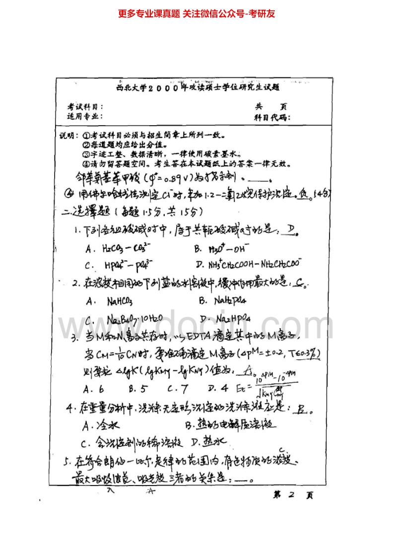 西北大学636分析化学(含仪器分析)2000、2003-2006考研真题汇编.Image.Marked猴哥6个月前发布关注私信8.79MB29页06542西北大学636分析化学(含仪器分析)2000、2003-2006考研真题汇编.Image.Marked此内容为免费资源,请登录后查看¥0 登录查看免费资源 第1页 / 共29页 第2页 / 共29页 第3页 / 共29页 该文档为免费文档,您可直接下载完整版进行阅读 © 版权声明文章版权归作者所有,未经允许请勿转载。THE END《西北大学》(636)基础医学综合考研资料考研专业课 喜欢就支持一下吧点赞42赞赏 分享QQ空间微博QQ好友海报分享复制链接收藏