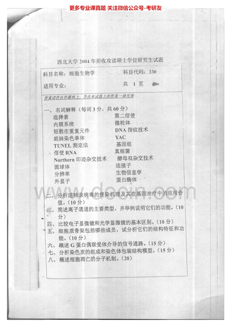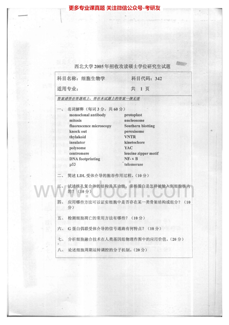 西北大学842细胞生物学2003-2012考研真题汇编.Image.Marked猴哥6个月前发布关注私信7.65MB29页09960西北大学842细胞生物学2003-2012考研真题汇编.Image.Marked此内容为免费资源,请登录后查看¥0 登录查看免费资源 第1页 / 共29页 第2页 / 共29页 第3页 / 共29页 该文档为免费文档,您可直接下载完整版进行阅读 © 版权声明文章版权归作者所有,未经允许请勿转载。THE END《西北大学》(842)细胞生物学考研资料考研专业课 喜欢就支持一下吧点赞60赞赏 分享QQ空间微博QQ好友海报分享复制链接收藏