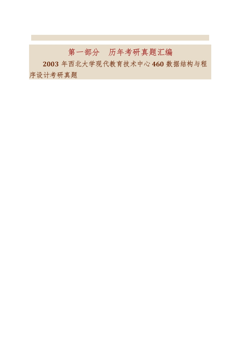 西北大学现代教育技术中心642数据结构与程序设计历年考研真题汇编猴哥6个月前发布关注私信2.62MB46页08849西北大学现代教育技术中心642数据结构与程序设计历年考研真题汇编此内容为免费资源,请登录后查看¥0 登录查看免费资源 第1页 / 共46页 第2页 / 共46页 第3页 / 共46页 该文档为免费文档,您可直接下载完整版进行阅读 © 版权声明文章版权归作者所有,未经允许请勿转载。THE END《西北大学》(642)电影创作基础考研资料考研专业课 喜欢就支持一下吧点赞49赞赏 分享QQ空间微博QQ好友海报分享复制链接收藏