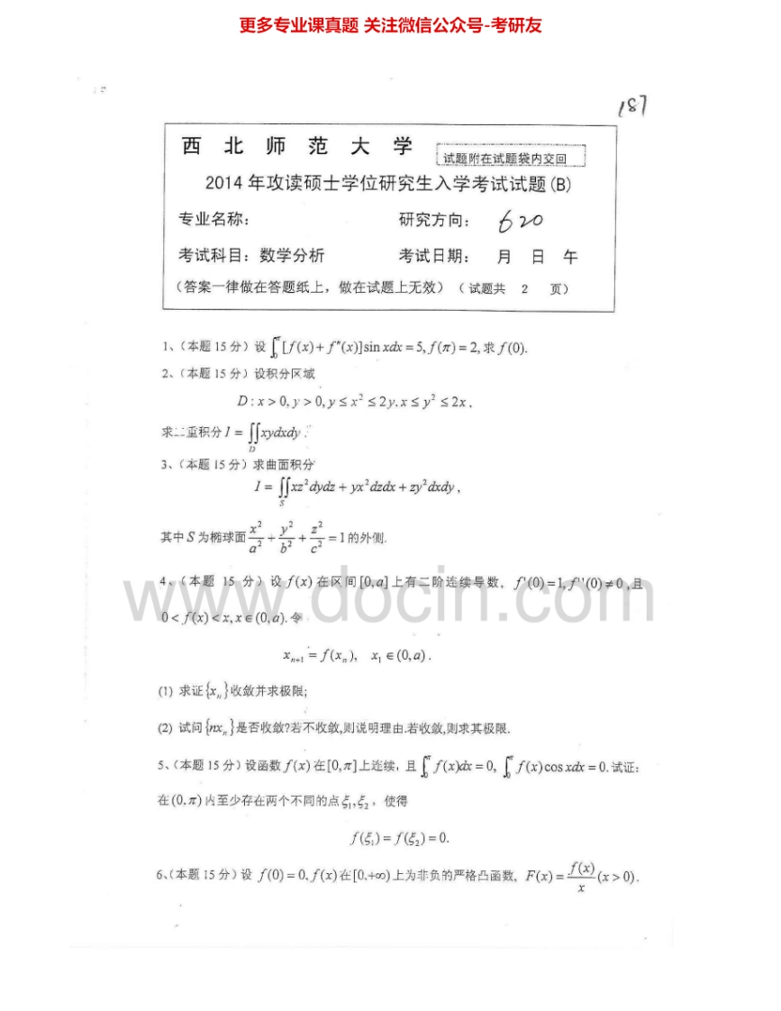 西北师范大学620数学分析2013-2015考研真题汇编.Image.Marked猴哥6个月前发布关注私信0.55MB6页07265西北师范大学620数学分析2013-2015考研真题汇编.Image.Marked此内容为免费资源,请登录后查看¥0 登录查看免费资源 第1页 / 共6页 第2页 / 共6页 第3页 / 共6页 该文档为免费文档,您可直接下载完整版进行阅读 © 版权声明文章版权归作者所有,未经允许请勿转载。THE END《西北师范大学》(620)数学分析考研资料考研专业课 喜欢就支持一下吧点赞65赞赏 分享QQ空间微博QQ好友海报分享复制链接收藏