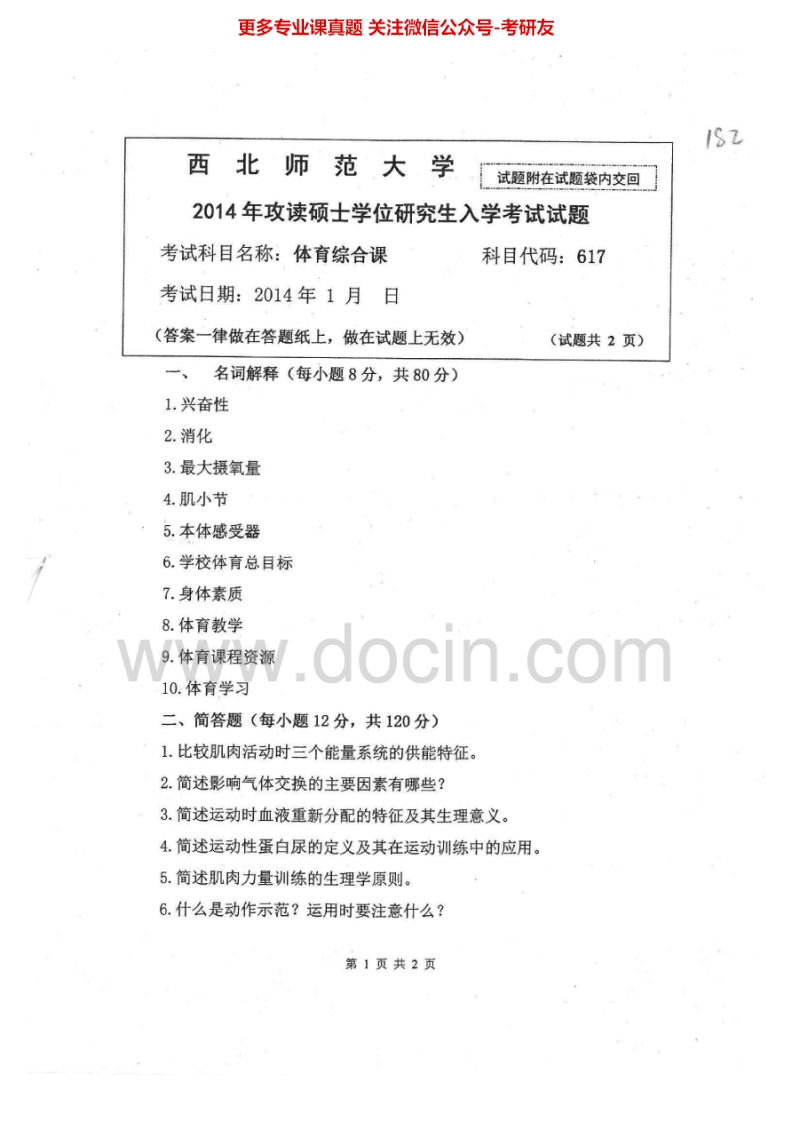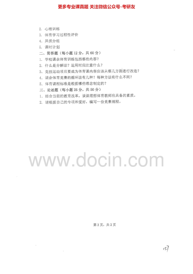 西北师范大学617体育综合课2013-2015考研真题汇编.Image.Marked猴哥6个月前发布关注私信0.89MB6页03938西北师范大学617体育综合课2013-2015考研真题汇编.Image.Marked此内容为免费资源,请登录后查看¥0 登录查看免费资源 第1页 / 共6页 第2页 / 共6页 第3页 / 共6页 该文档为免费文档,您可直接下载完整版进行阅读 © 版权声明文章版权归作者所有,未经允许请勿转载。THE END《西北师范大学》(617)体育综合课考研资料考研专业课 喜欢就支持一下吧点赞38赞赏 分享QQ空间微博QQ好友海报分享复制链接收藏
