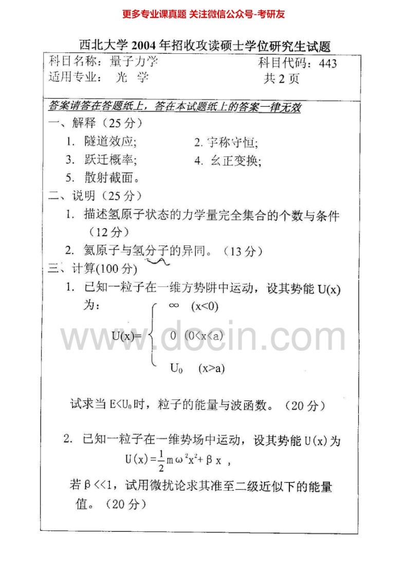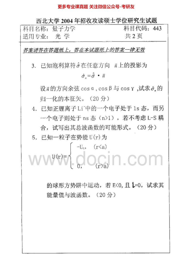 西北大学量子力学2003-2006考研真题汇编猴哥6个月前发布关注私信2.40MB7页07224西北大学量子力学2003-2006考研真题汇编此内容为免费资源,请登录后查看¥0 登录查看免费资源 第1页 / 共7页 第2页 / 共7页 第3页 / 共7页 该文档为免费文档,您可直接下载完整版进行阅读 © 版权声明文章版权归作者所有,未经允许请勿转载。THE END考研专业课 喜欢就支持一下吧点赞24赞赏 分享QQ空间微博QQ好友海报分享复制链接收藏