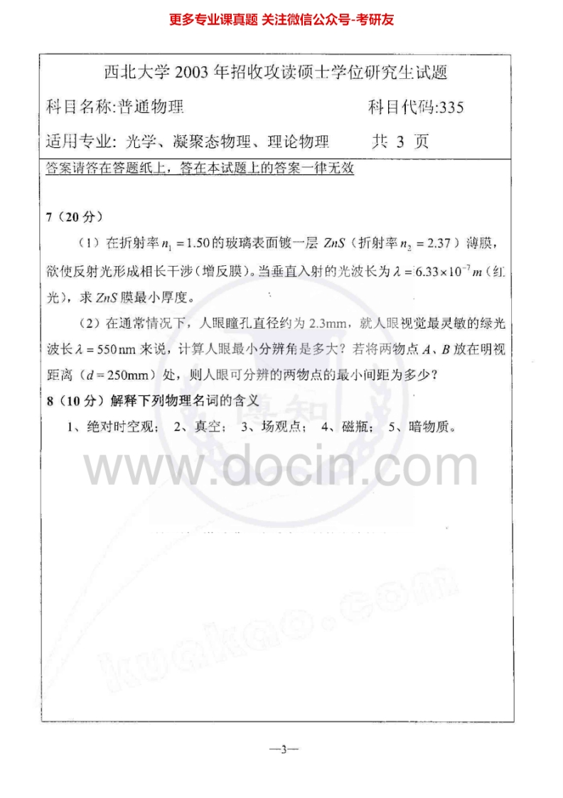 西北大学普通物理03-0608-10、12-14考研真题汇编猴哥6个月前发布关注私信18.99MB46页08418西北大学普通物理03-0608-10、12-14考研真题汇编此内容为免费资源,请登录后查看¥0 登录查看免费资源 第1页 / 共46页 第2页 / 共46页 第3页 / 共46页 该文档为免费文档,您可直接下载完整版进行阅读 © 版权声明文章版权归作者所有,未经允许请勿转载。THE END考研专业课 喜欢就支持一下吧点赞18赞赏 分享QQ空间微博QQ好友海报分享复制链接收藏