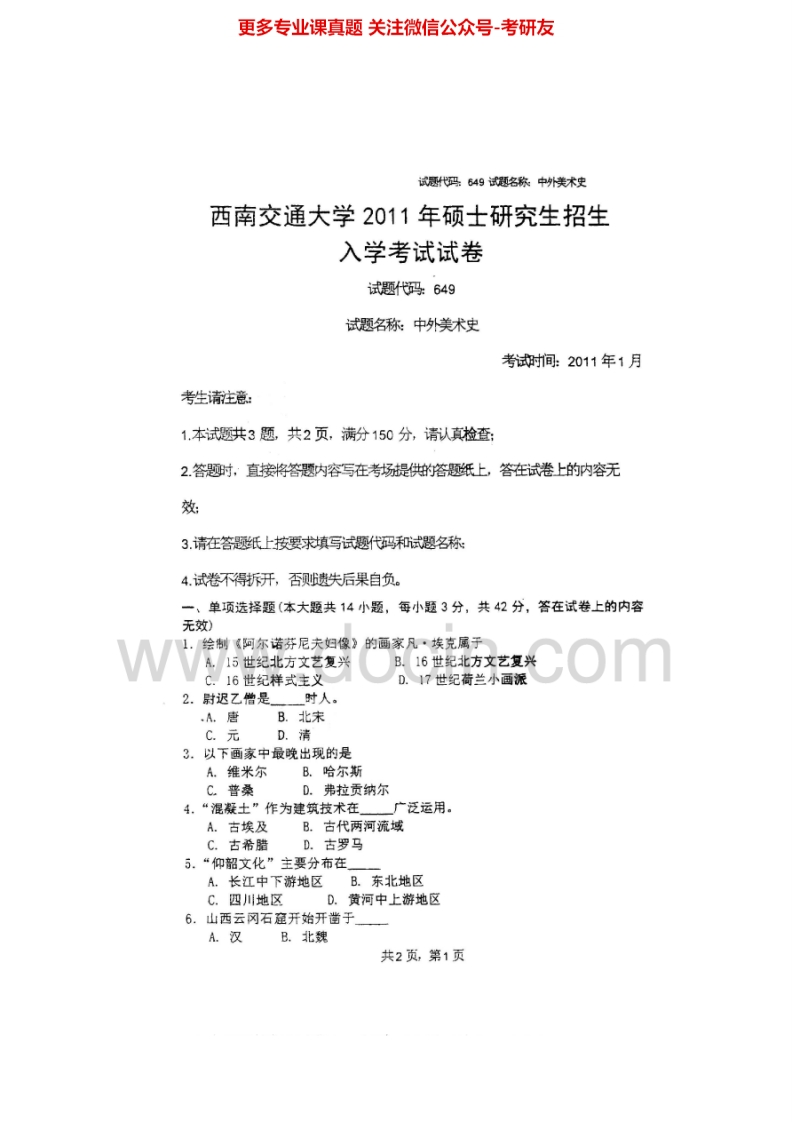 西南交通大学649中外美术史2008、2011、2015考研真题汇编.Image.Marked猴哥6个月前发布关注私信1.24MB6页09118西南交通大学649中外美术史2008、2011、2015考研真题汇编.Image.Marked此内容为免费资源,请登录后查看¥0 登录查看免费资源 第1页 / 共6页 第2页 / 共6页 第3页 / 共6页 该文档为免费文档,您可直接下载完整版进行阅读 © 版权声明文章版权归作者所有,未经允许请勿转载。THE END《西南交通大学》(649)中外美术史考研资料考研专业课 喜欢就支持一下吧点赞18赞赏 分享QQ空间微博QQ好友海报分享复制链接收藏