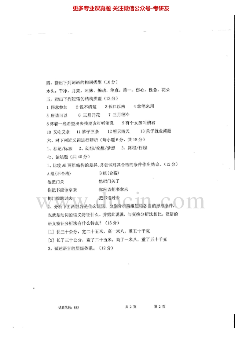 西南交通大学语言学理论与现代汉语2008考研真题汇编.Image.Marked猴哥6个月前发布关注私信0.33MB2页07044西南交通大学语言学理论与现代汉语2008考研真题汇编.Image.Marked此内容为免费资源,请登录后查看¥0 登录查看免费资源 第1页 / 共2页 第2页 / 共2页 已完成全部阅读,共2页 © 版权声明文章版权归作者所有,未经允许请勿转载。THE END考研专业课 喜欢就支持一下吧点赞44赞赏 分享QQ空间微博QQ好友海报分享复制链接收藏