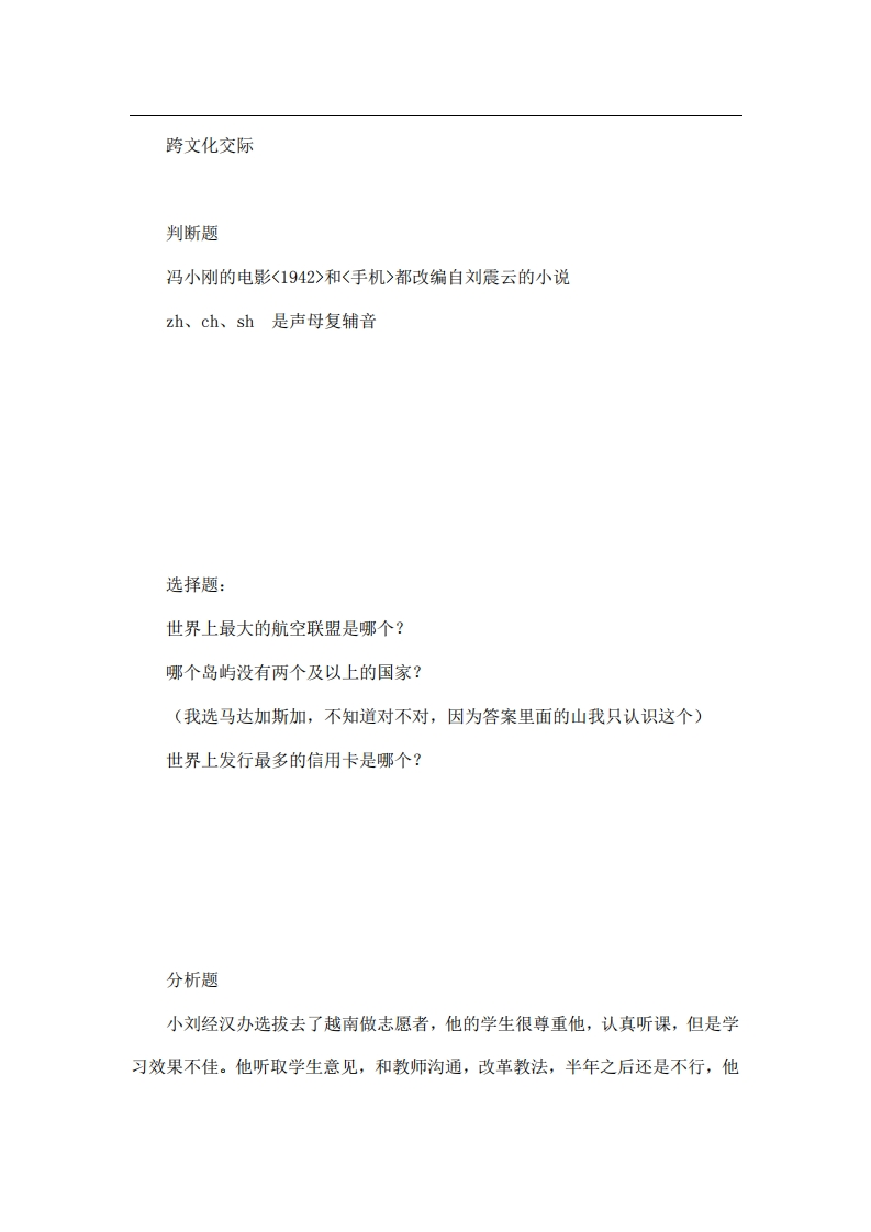 西南大学445汉语国际教育基础2013年考研试题(回忆版)猴哥6个月前发布关注私信51.71KB2页06241西南大学445汉语国际教育基础2013年考研试题(回忆版)此内容为免费资源,请登录后查看¥0 登录查看免费资源 第1页 / 共2页 第2页 / 共2页 已完成全部阅读,共2页 © 版权声明文章版权归作者所有,未经允许请勿转载。THE END《西南大学》(445)汉语国际教育基础考研资料考研专业课 喜欢就支持一下吧点赞41赞赏 分享QQ空间微博QQ好友海报分享复制链接收藏