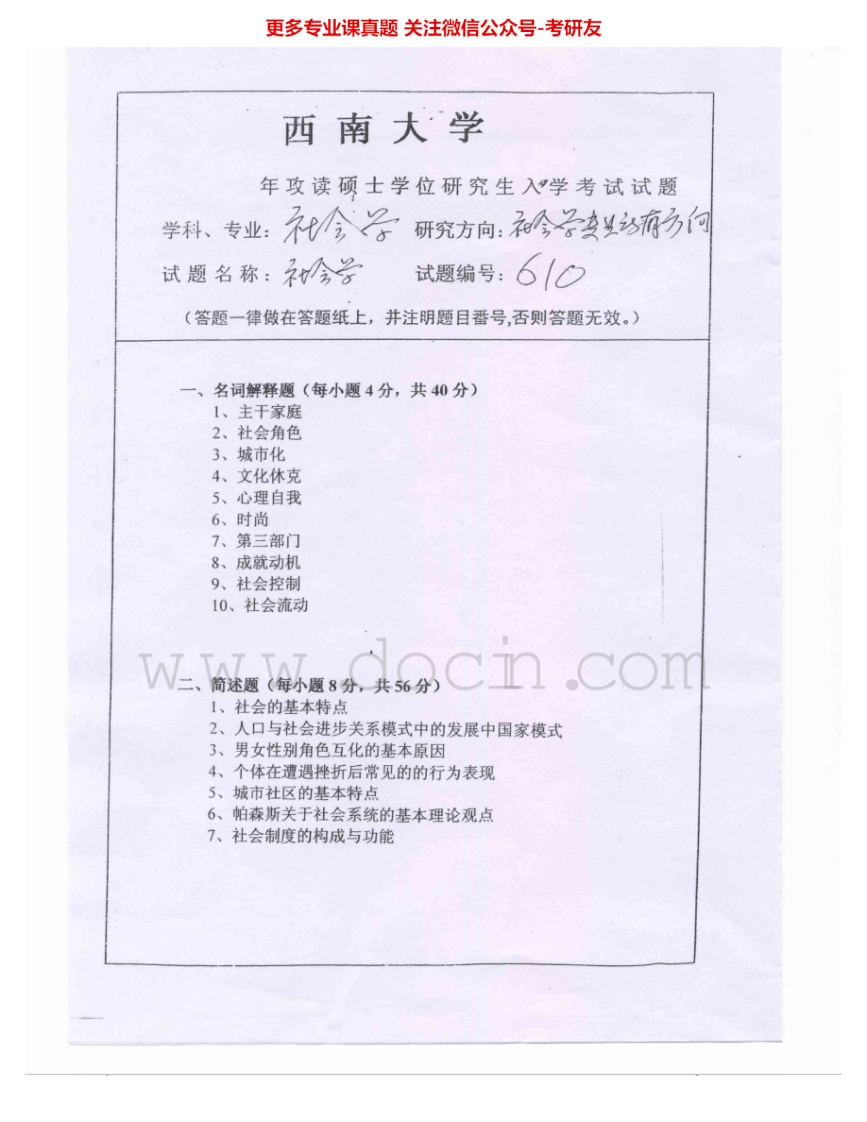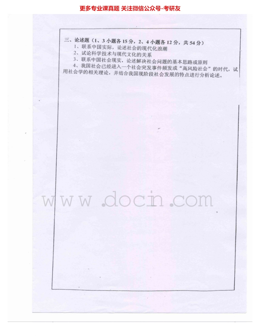 西南大学610社会学2006-2010考研真题汇编.Image.Marked猴哥6个月前发布关注私信2.47MB9页08442西南大学610社会学2006-2010考研真题汇编.Image.Marked此内容为免费资源,请登录后查看¥0 登录查看免费资源 第1页 / 共9页 第2页 / 共9页 第3页 / 共9页 该文档为免费文档,您可直接下载完整版进行阅读 © 版权声明文章版权归作者所有,未经允许请勿转载。THE END《西南大学》(610)社会学考研资料考研专业课 喜欢就支持一下吧点赞42赞赏 分享QQ空间微博QQ好友海报分享复制链接收藏