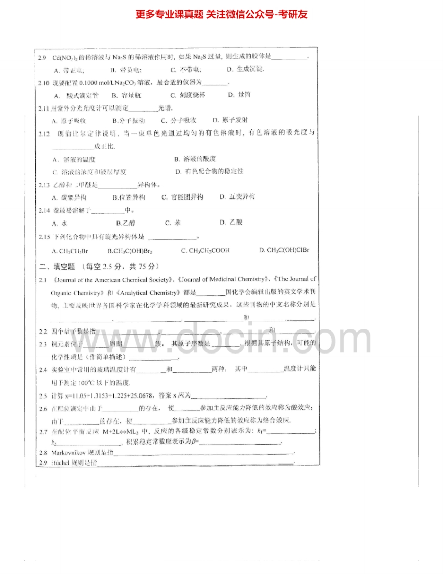 西南大学636化学综合2008-2010考研真题汇编.Image.Marked猴哥6个月前发布关注私信3.20MB11页05664西南大学636化学综合2008-2010考研真题汇编.Image.Marked此内容为免费资源,请登录后查看¥0 登录查看免费资源 第1页 / 共11页 第2页 / 共11页 第3页 / 共11页 该文档为免费文档,您可直接下载完整版进行阅读 © 版权声明文章版权归作者所有,未经允许请勿转载。THE END考研专业课 喜欢就支持一下吧点赞64赞赏 分享QQ空间微博QQ好友海报分享复制链接收藏