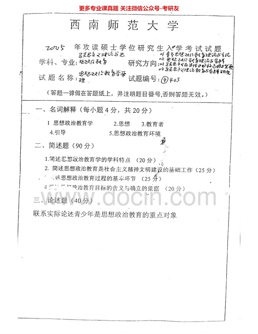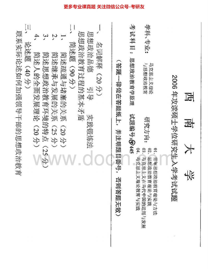 西南大学838思想政治教育基本理论2004-2010考研真题汇编.Image.Marked