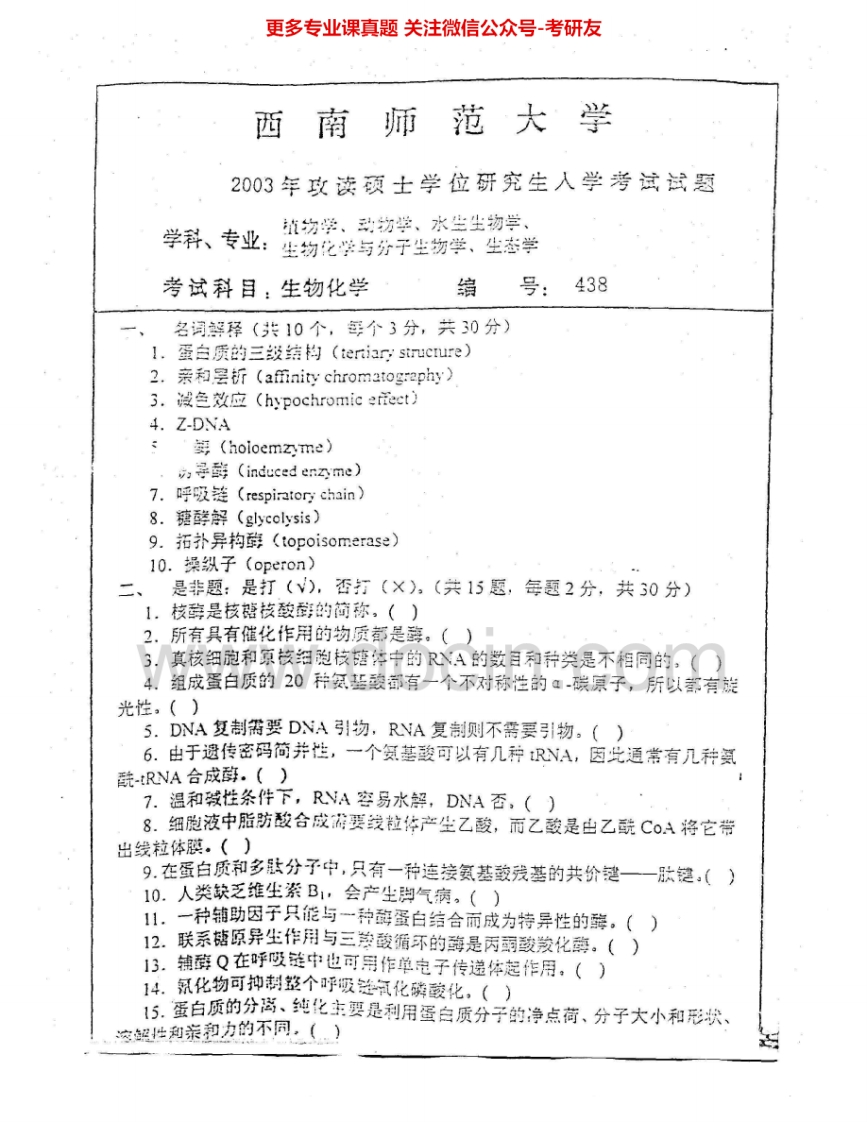 西南大学834生物化学2002-2010考研真题汇编.Image.Marked猴哥6个月前发布关注私信11.49MB33页04613西南大学834生物化学2002-2010考研真题汇编.Image.Marked此内容为免费资源,请登录后查看¥0 登录查看免费资源 第1页 / 共33页 第2页 / 共33页 第3页 / 共33页 该文档为免费文档,您可直接下载完整版进行阅读 © 版权声明文章版权归作者所有,未经允许请勿转载。THE END《西南大学》(834)自命题生物化学考研资料考研专业课 喜欢就支持一下吧点赞13赞赏 分享QQ空间微博QQ好友海报分享复制链接收藏