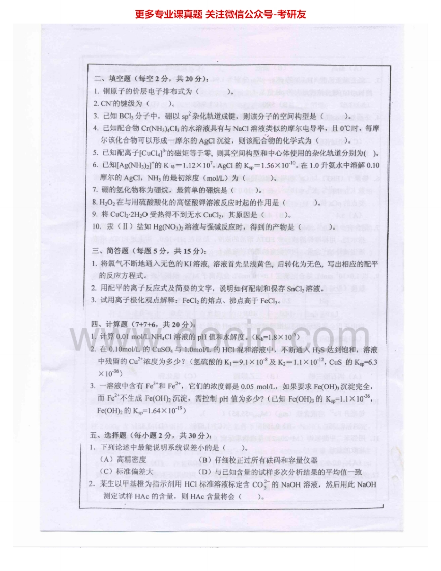 西南大学658无机化学及分析化学2007-2010考研真题汇编.Image.Marked猴哥6个月前发布关注私信8.32MB22页04052西南大学658无机化学及分析化学2007-2010考研真题汇编.Image.Marked此内容为免费资源,请登录后查看¥0 登录查看免费资源 第1页 / 共22页 第2页 / 共22页 第3页 / 共22页 该文档为免费文档,您可直接下载完整版进行阅读 © 版权声明文章版权归作者所有,未经允许请勿转载。THE END《西南大学》(658)无机化学及分析化学考研资料考研专业课 喜欢就支持一下吧点赞52赞赏 分享QQ空间微博QQ好友海报分享复制链接收藏