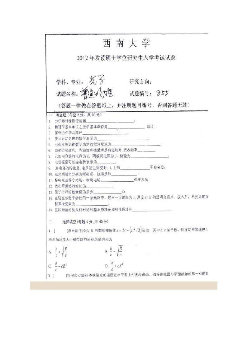 西南大学材料与能源学部830普通物理历年考研真题汇编猴哥6个月前发布关注私信1.83MB40页07243西南大学材料与能源学部830普通物理历年考研真题汇编此内容为免费资源,请登录后查看¥0 登录查看免费资源 第1页 / 共40页 第2页 / 共40页 第3页 / 共40页 该文档为免费文档,您可直接下载完整版进行阅读 © 版权声明文章版权归作者所有,未经允许请勿转载。THE END考研专业课 喜欢就支持一下吧点赞43赞赏 分享QQ空间微博QQ好友海报分享复制链接收藏