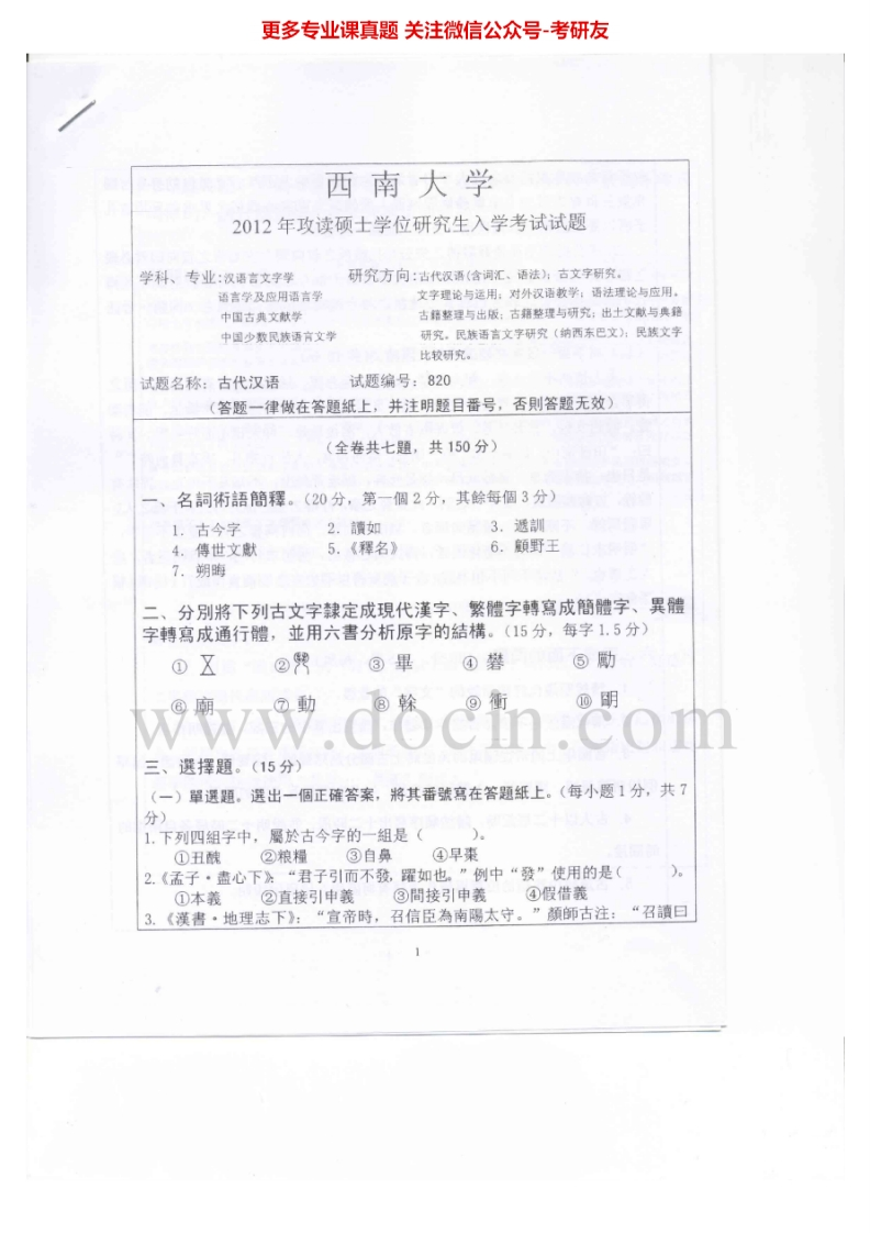 西南大学古代汉语2003-2010、2012、2015考研真题汇编.Image.Marked猴哥6个月前发布关注私信12.84MB34页07448西南大学古代汉语2003-2010、2012、2015考研真题汇编.Image.Marked此内容为免费资源,请登录后查看¥0 登录查看免费资源 第1页 / 共34页 第2页 / 共34页 第3页 / 共34页 该文档为免费文档,您可直接下载完整版进行阅读 © 版权声明文章版权归作者所有,未经允许请勿转载。THE END考研专业课 喜欢就支持一下吧点赞48赞赏 分享QQ空间微博QQ好友海报分享复制链接收藏